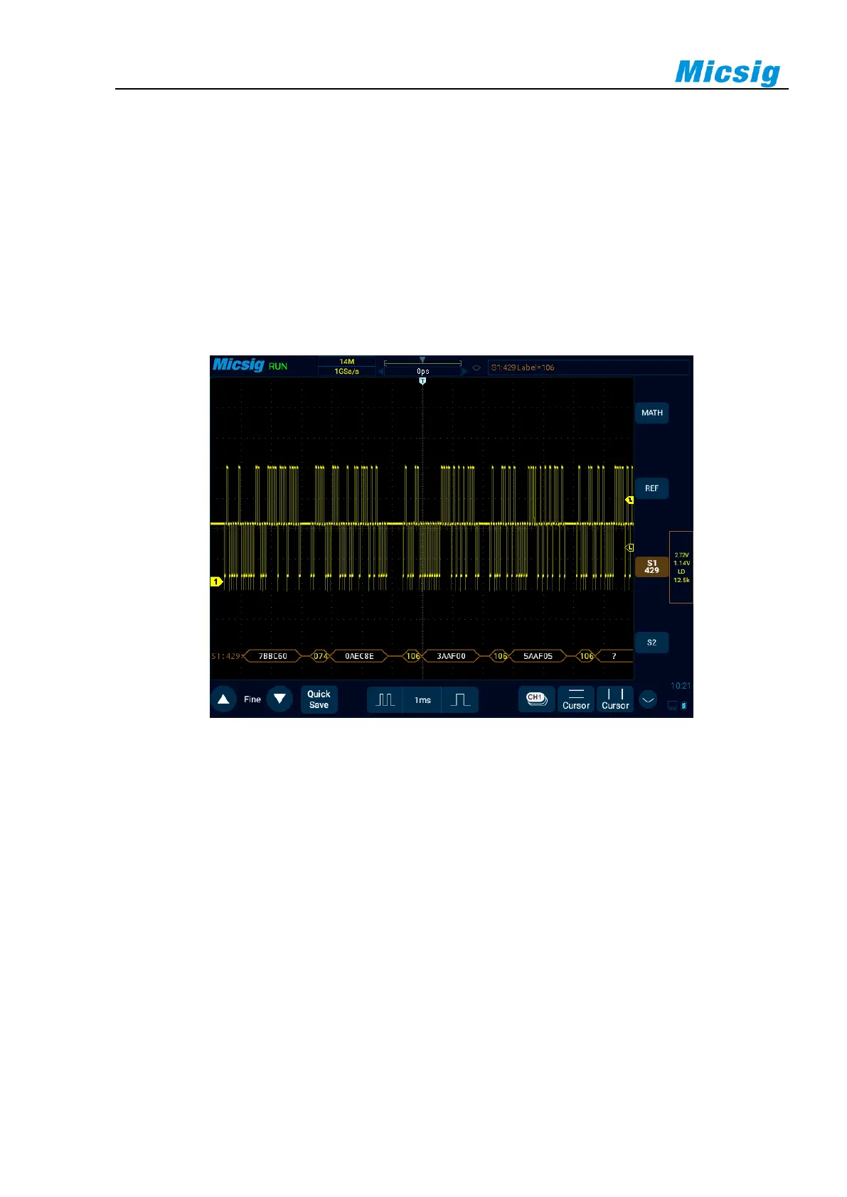 Select bus type “429”, source as “CH1”, decode format as “Label+Data”, display in “hexadecimal”,