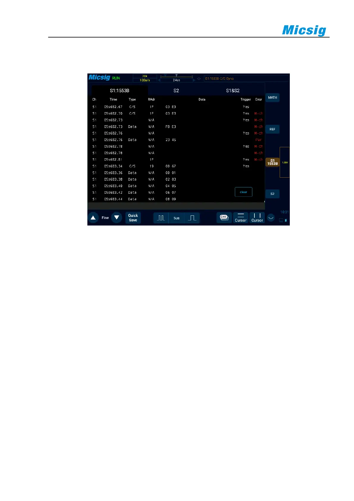 (7) “Error”: displays the frame error type (parity error Par, Manchester coding error M-ch).
