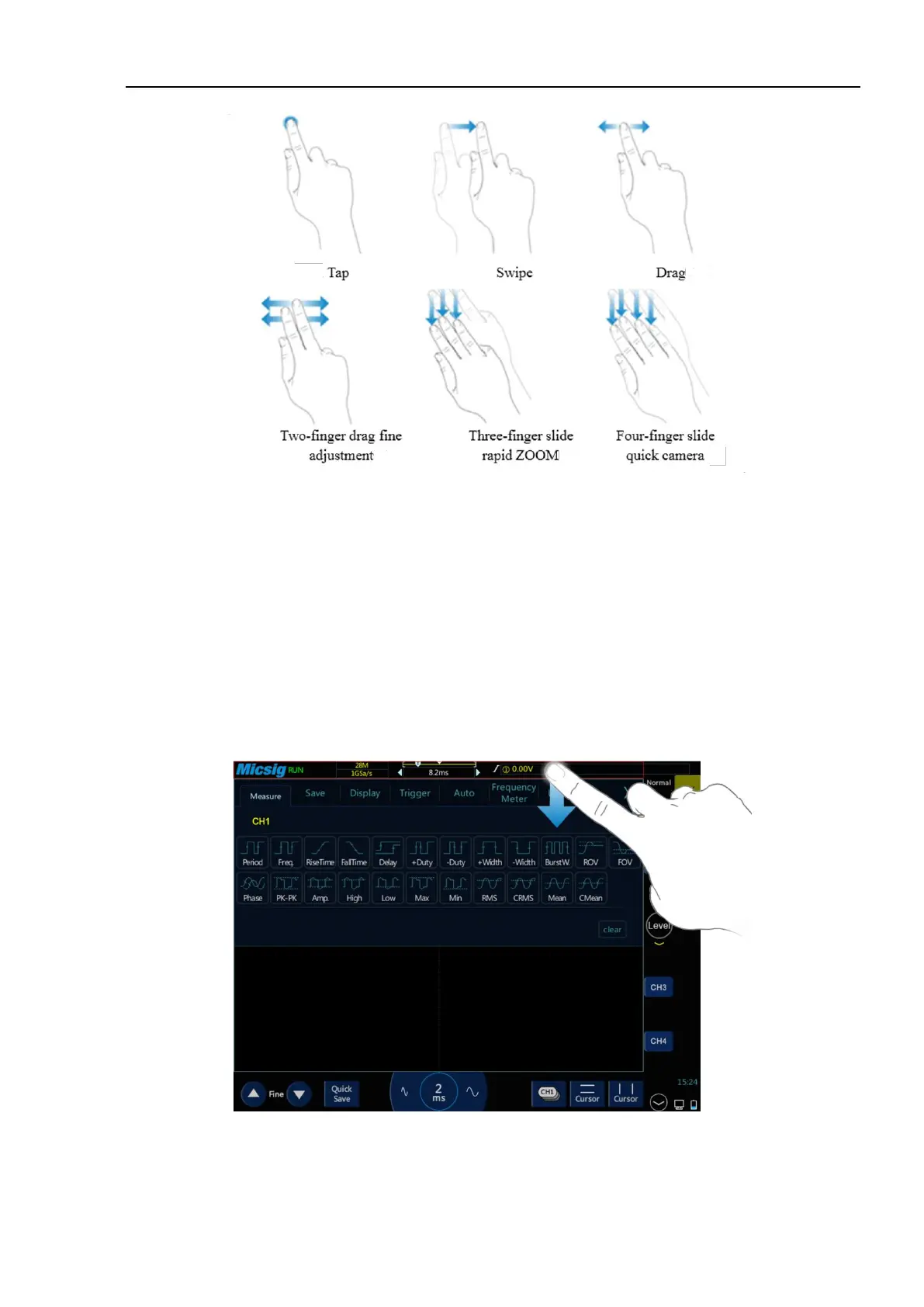 Figure 2-5 Basic Operations of tBook mini series Oscilloscope