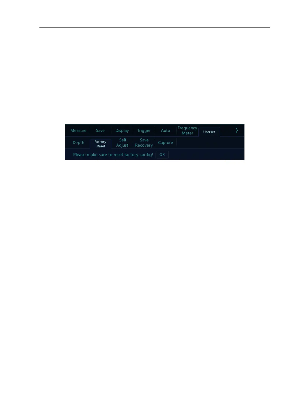 box for loading factory settings will pop-up. Press “OK” and load the factory settings. The dialog box for loading