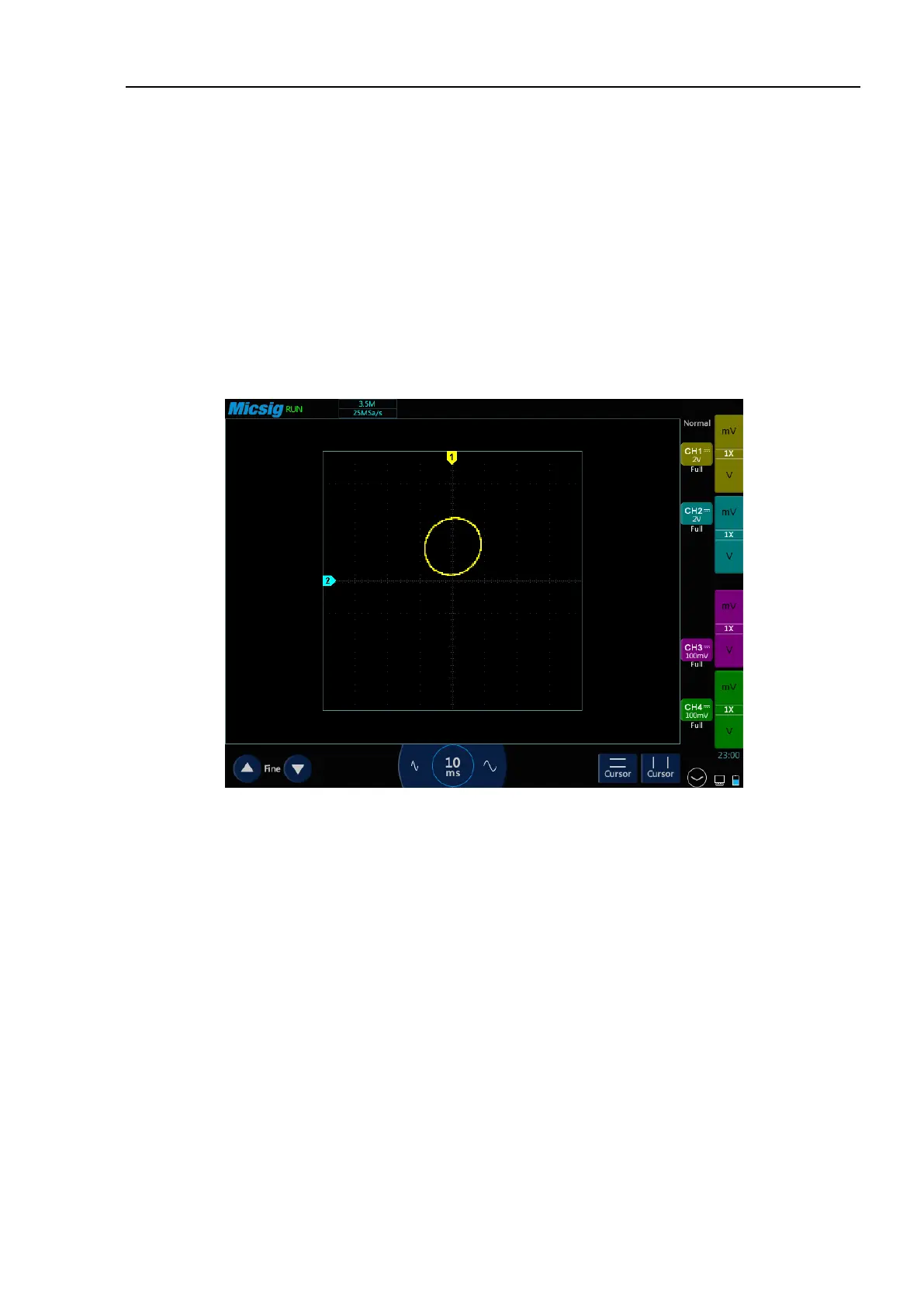 1) Connect sine wave signals to CH1 and connect sine wave signals of the same frequency and different phases