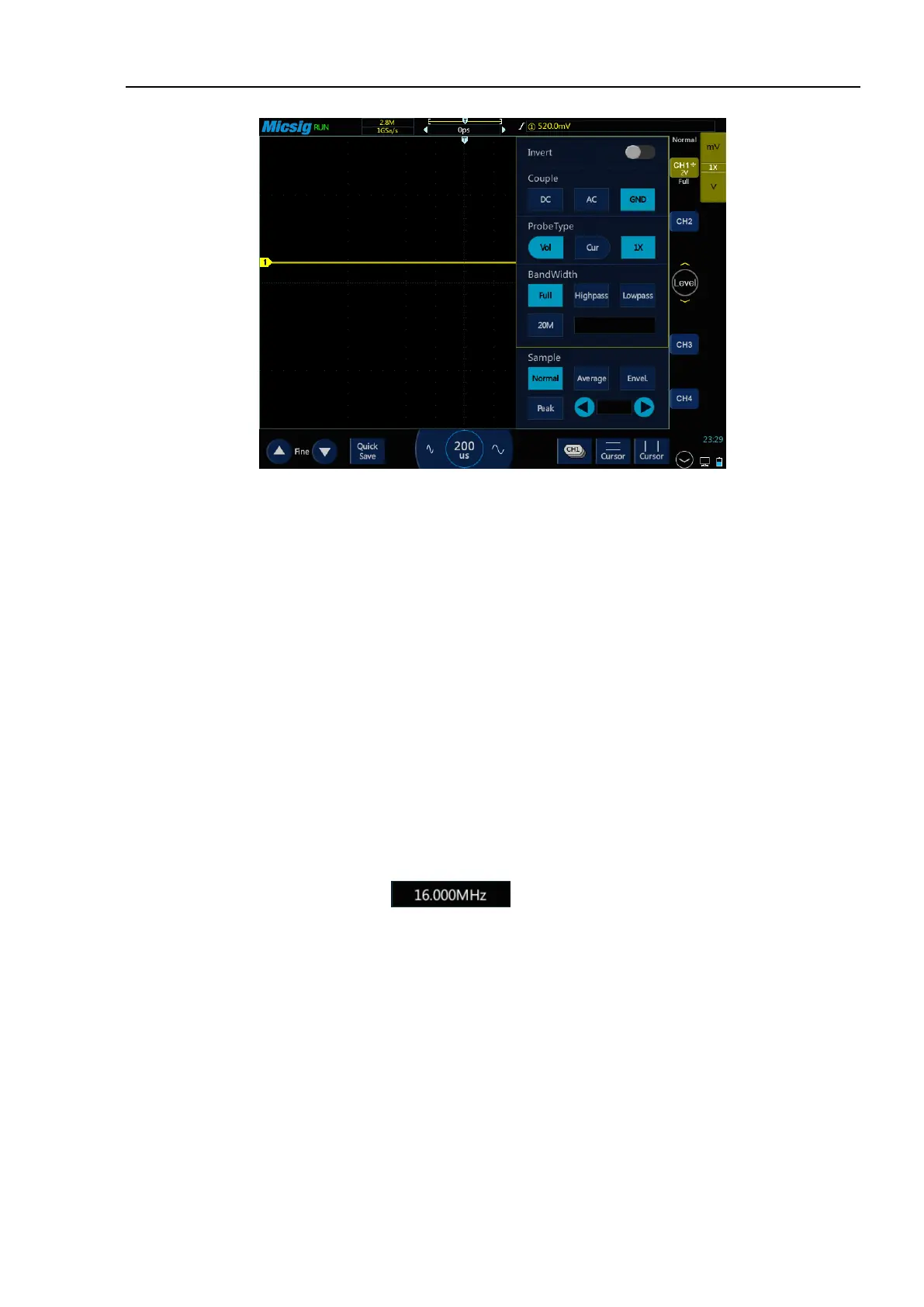 High-pass filtering and low-pass filtering can be set within the frequency range of 30kHz-100MHz.