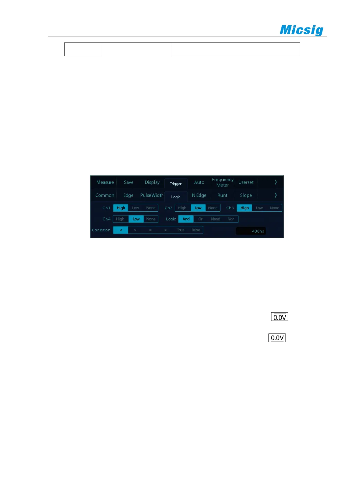 High: means a value higher than the current trigger level, and the icon indication is “ ”.