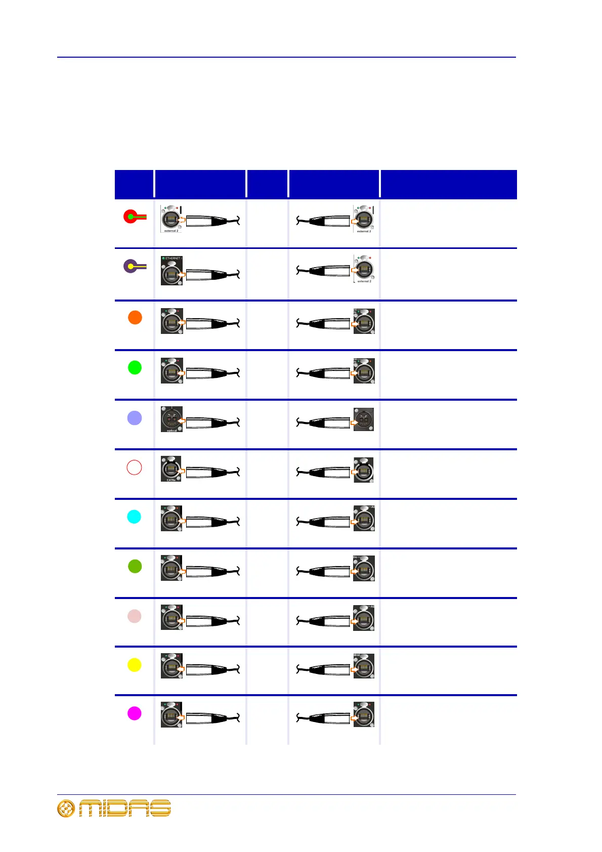 Table 1 below shows the type, terminations and function of the XL8 system’s