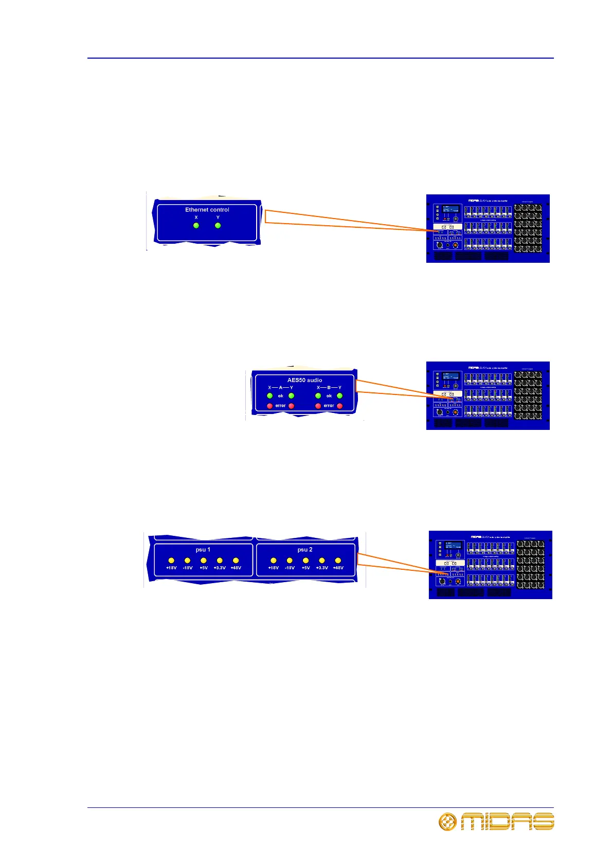 In the AES50 panel, each X and Y channel - on both the A and B mic amp sections - has