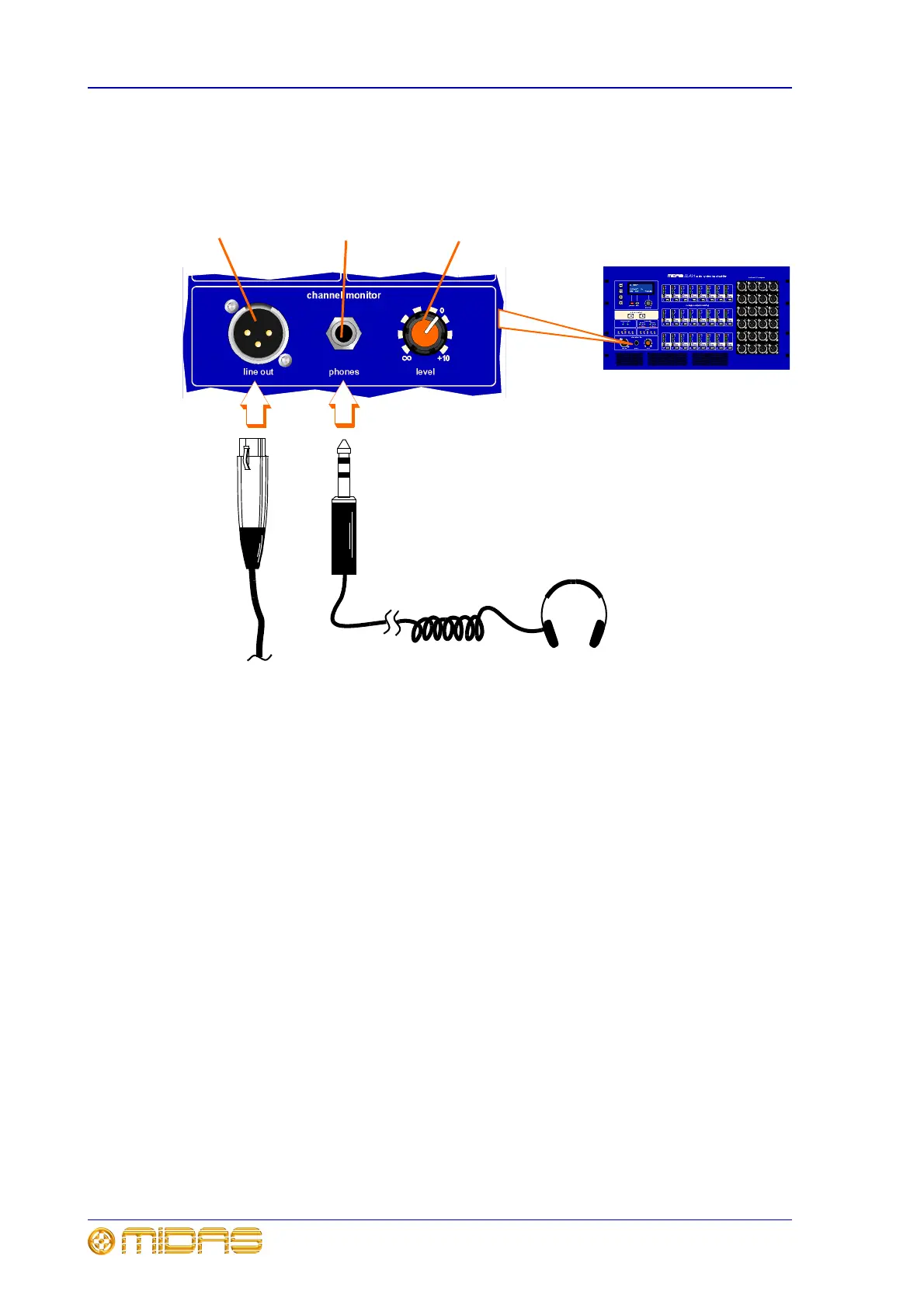 The channel monitor panel allows you to connect headphones and listen to the audio