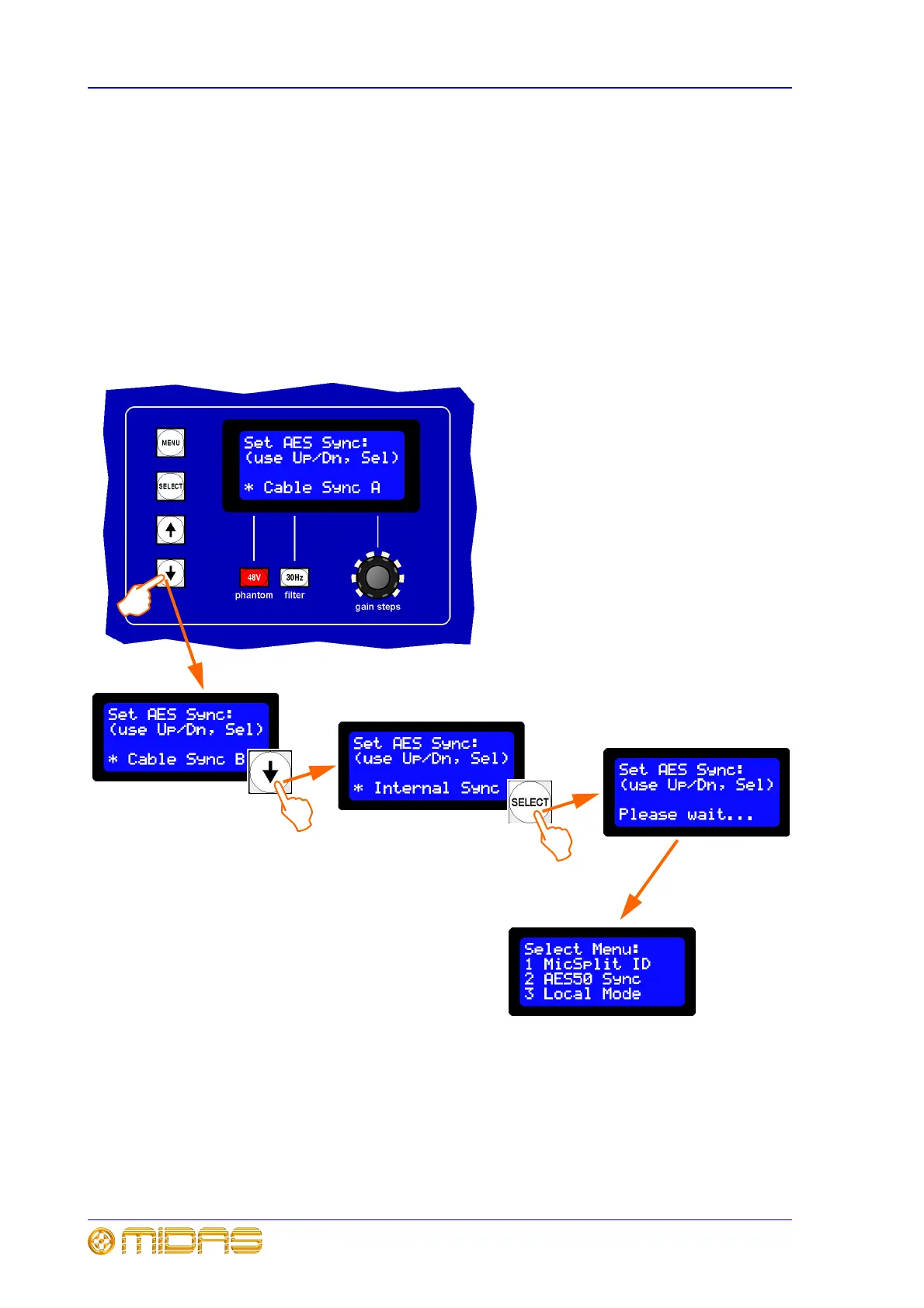 Enter the main menu, select option 2 and then continue to set the unit’s AES50