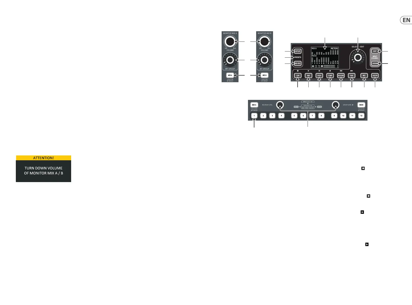 NOTE: When powering on, if the position of the MONITOR MIX A or MONITOR MIX B knob is higher than approx.