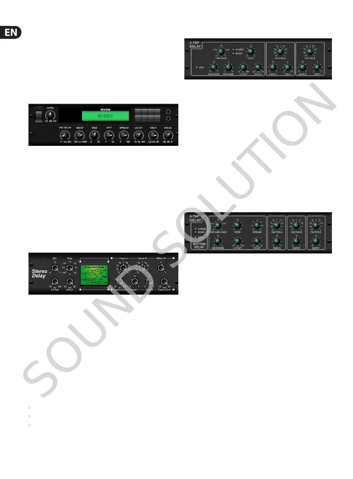 리듬 딜레이, 4-탭 딜레이는 독리된 주파수와 게인 및 팬 컨트롤이