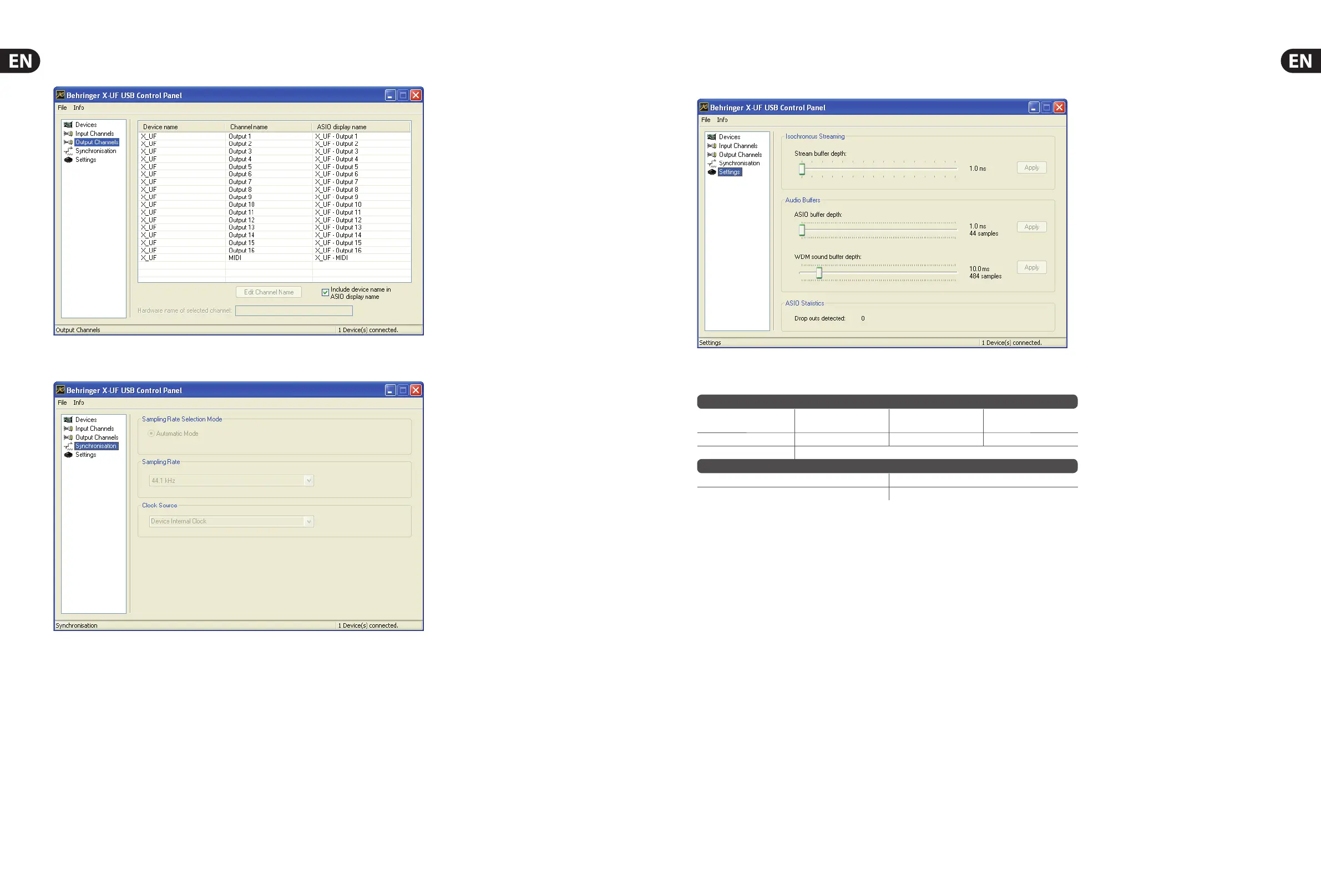 The ’Settings’ screen allows the stream, ASIO, and WDM sound bu ers to be set.