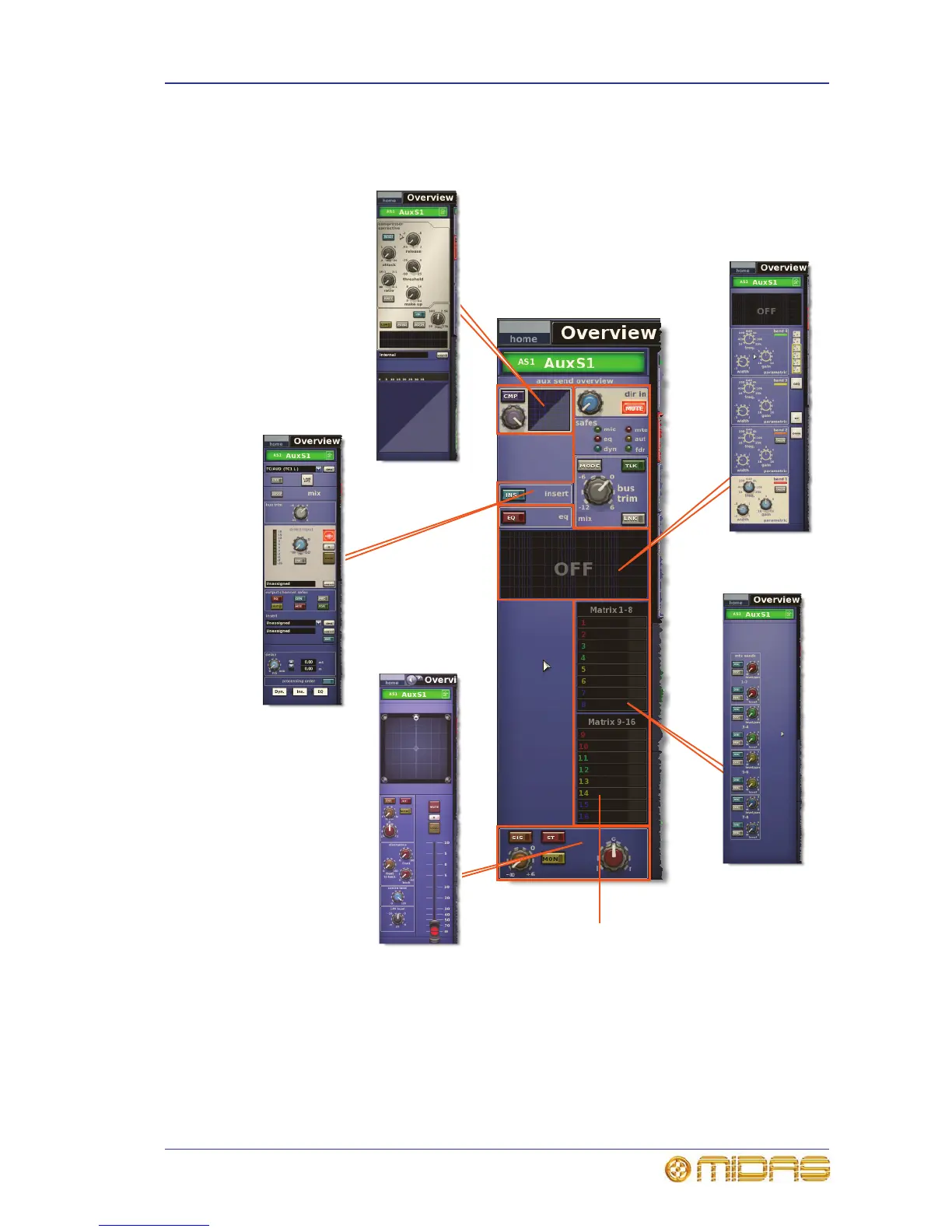 For details of how to navigate the GUI channel strips, see “Navigation via the GUI” on
