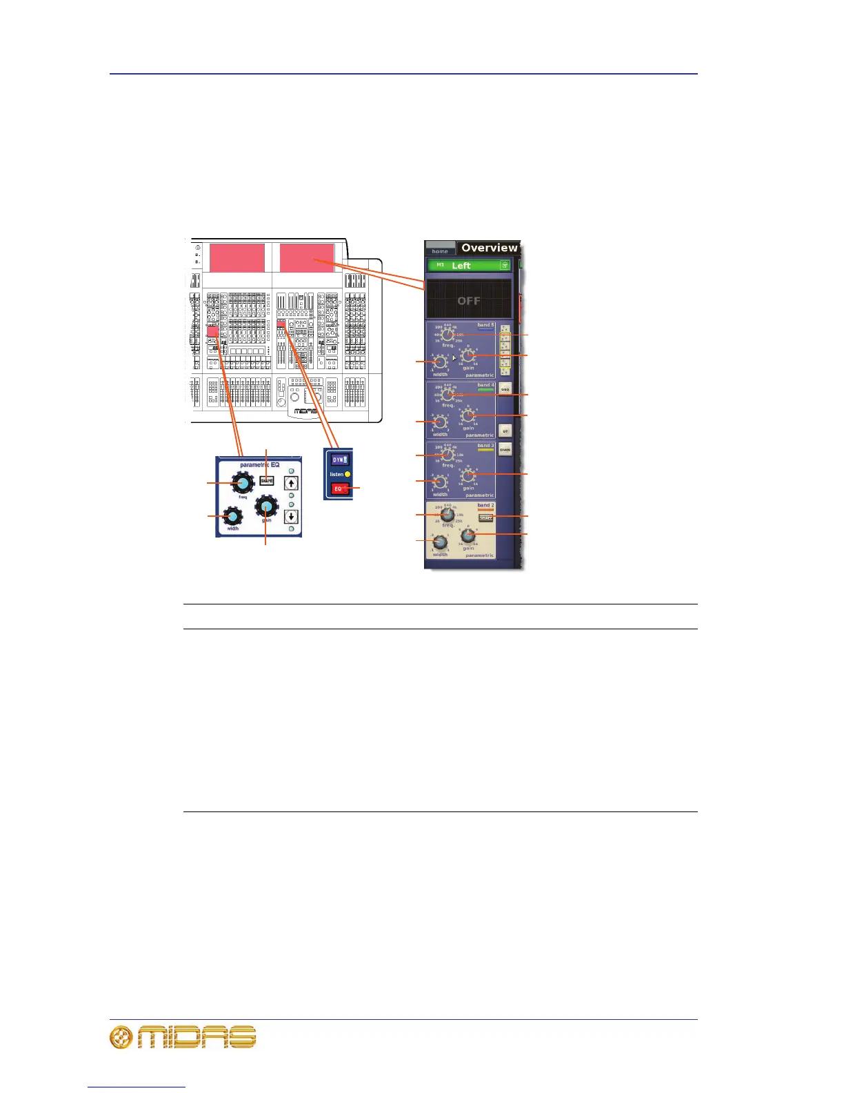 The following diagram shows the parameters of the EQ section (including the GEQ)
