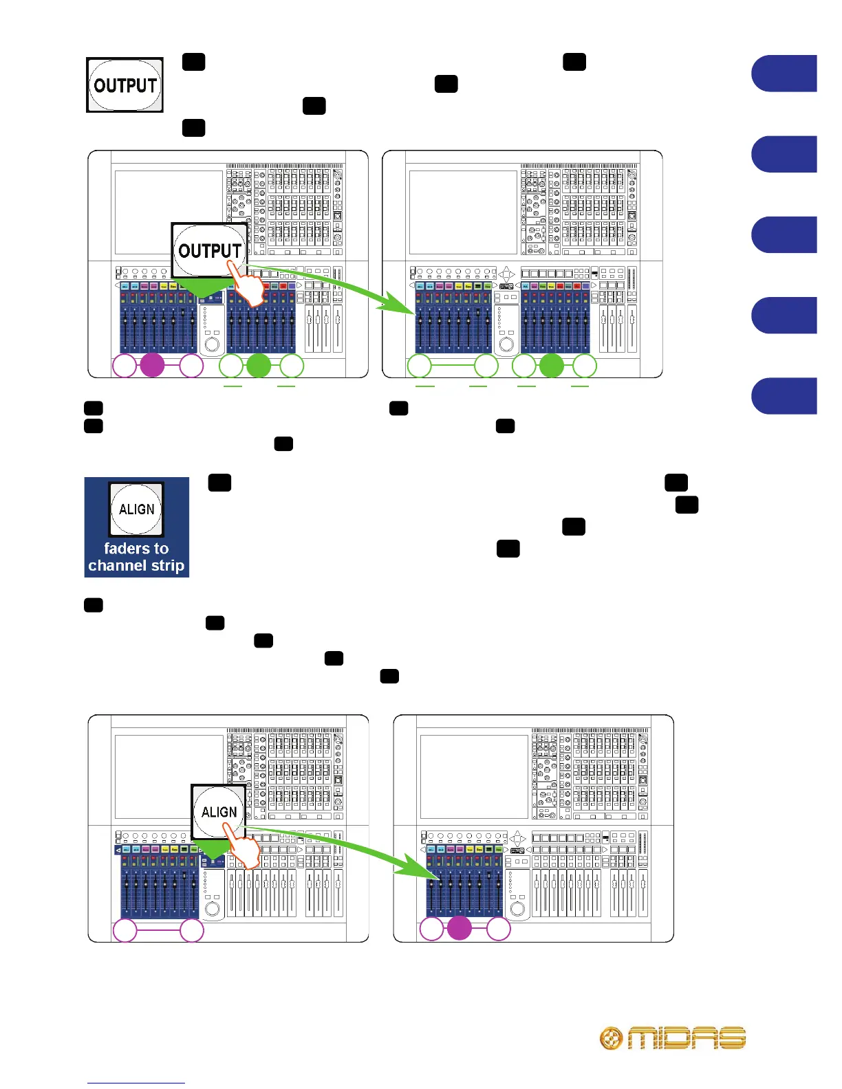 This will recall the last viewed set of output channels. Esto cargará el último grupo de canales de salida visualizados.