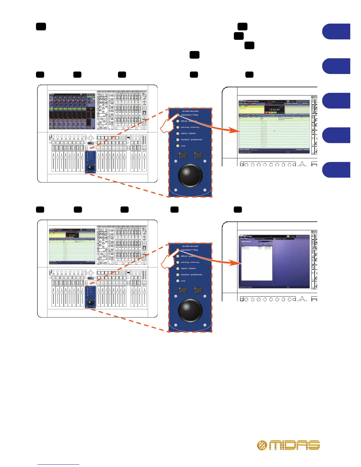 To open a GUI menu screen using the screen access buttons Para acceder a una