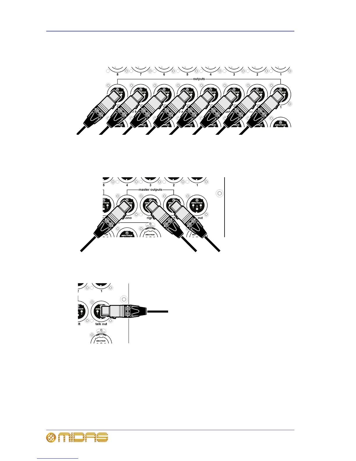 The outputs section has eight output connectors for XLR analogue outputs.