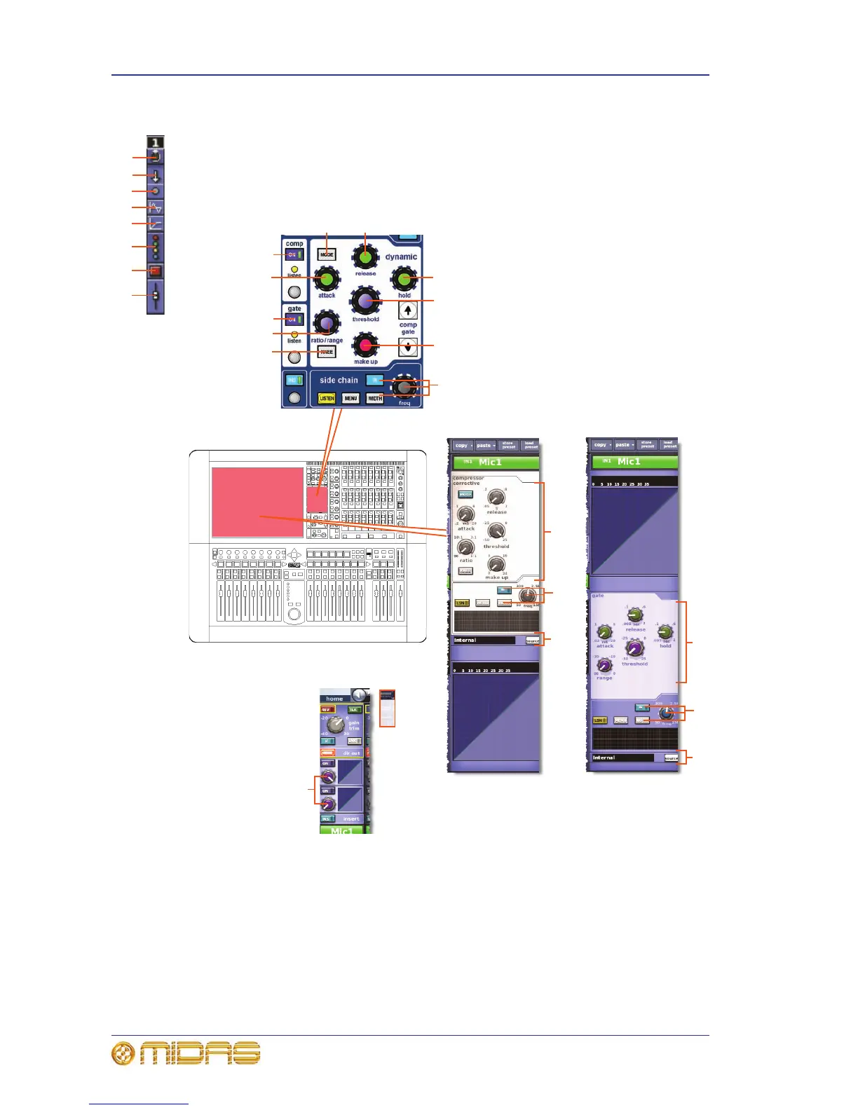 channels, and shows the compressor and gate detail areas of the GUI channel strip.