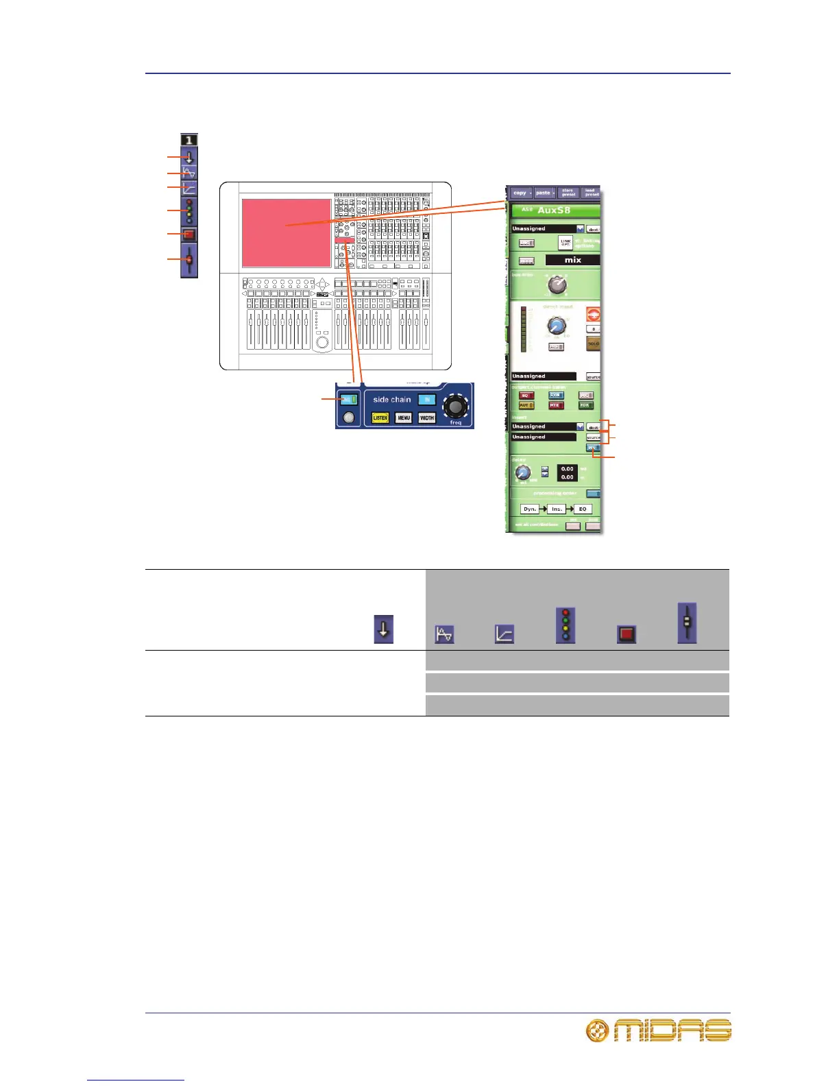 The following diagram details the scoped insert parameters of the aux channels, and