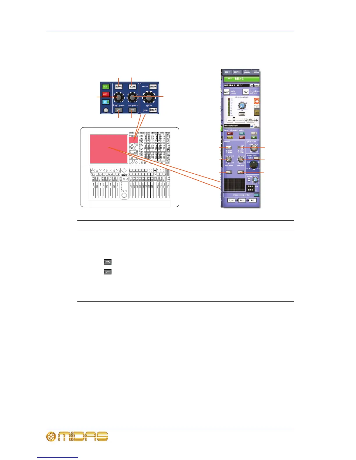 6 SLOPE pushbutton High pass filter slope 12dB or 24dB