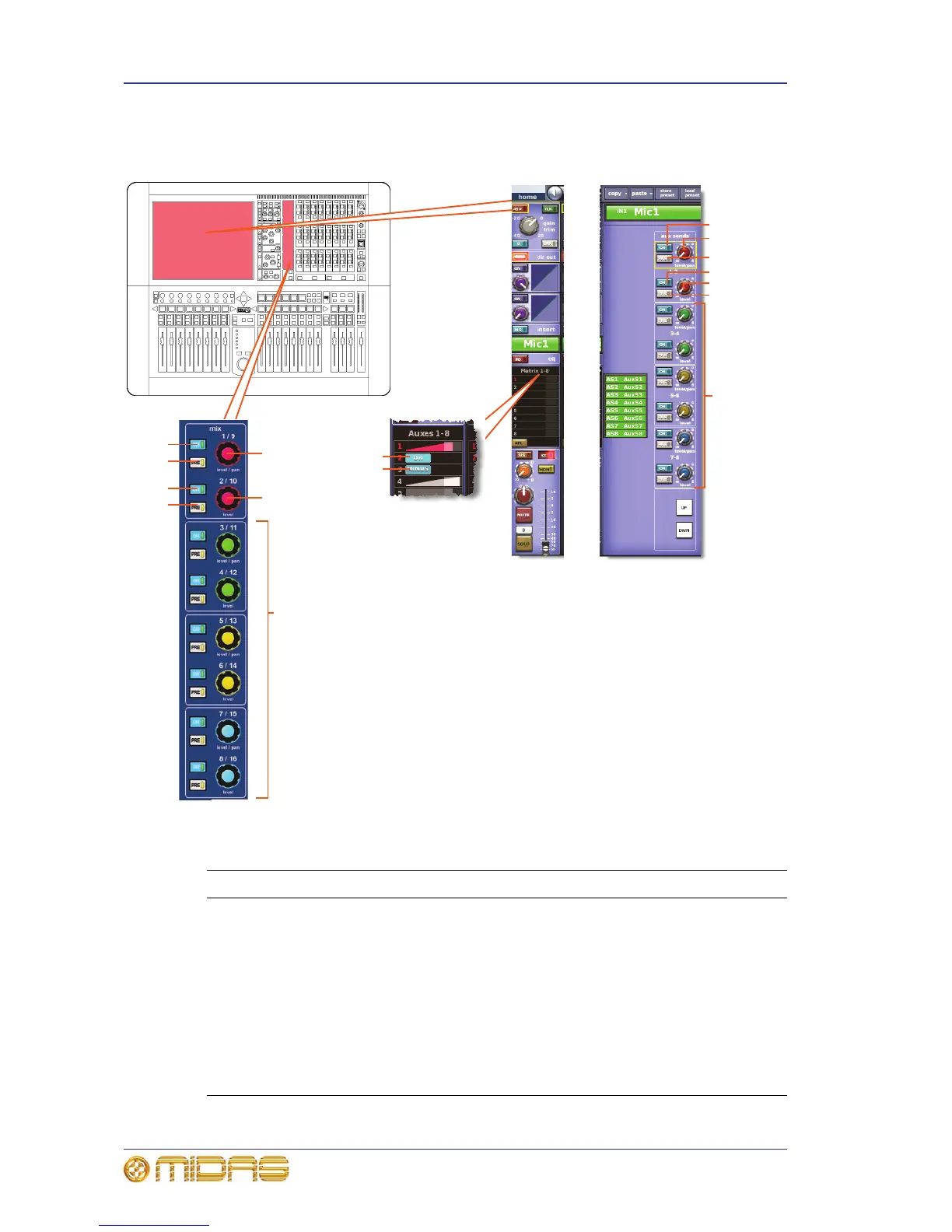 Note: Only aux sends 1 to 8 are shown above, but this is typically the same for all of