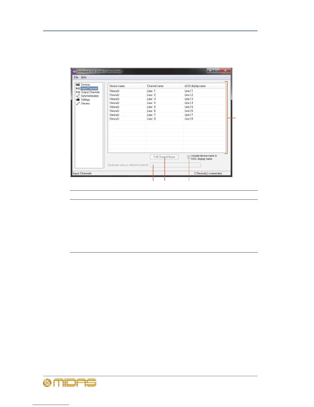 3 Edit Channel Name button. Lets you change the name of an input