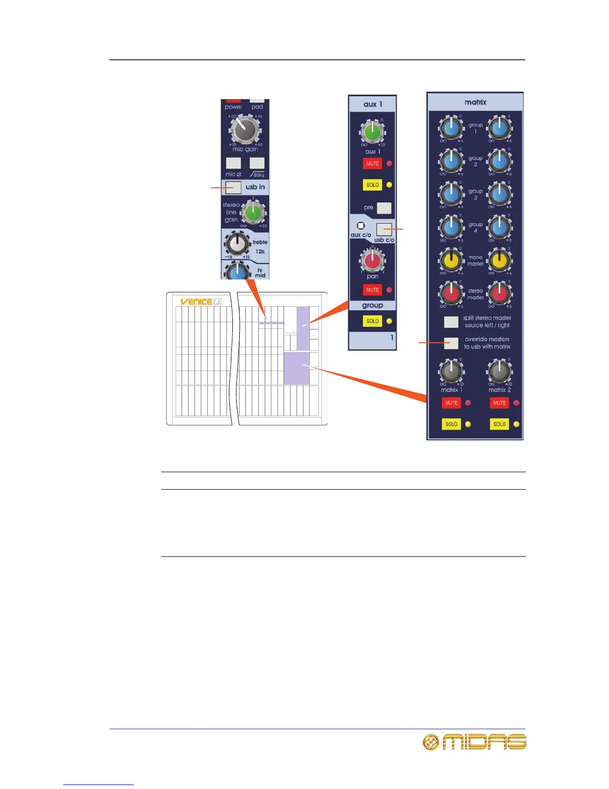 2 usb c/o This latching switch flips the aux USB output to group output.
