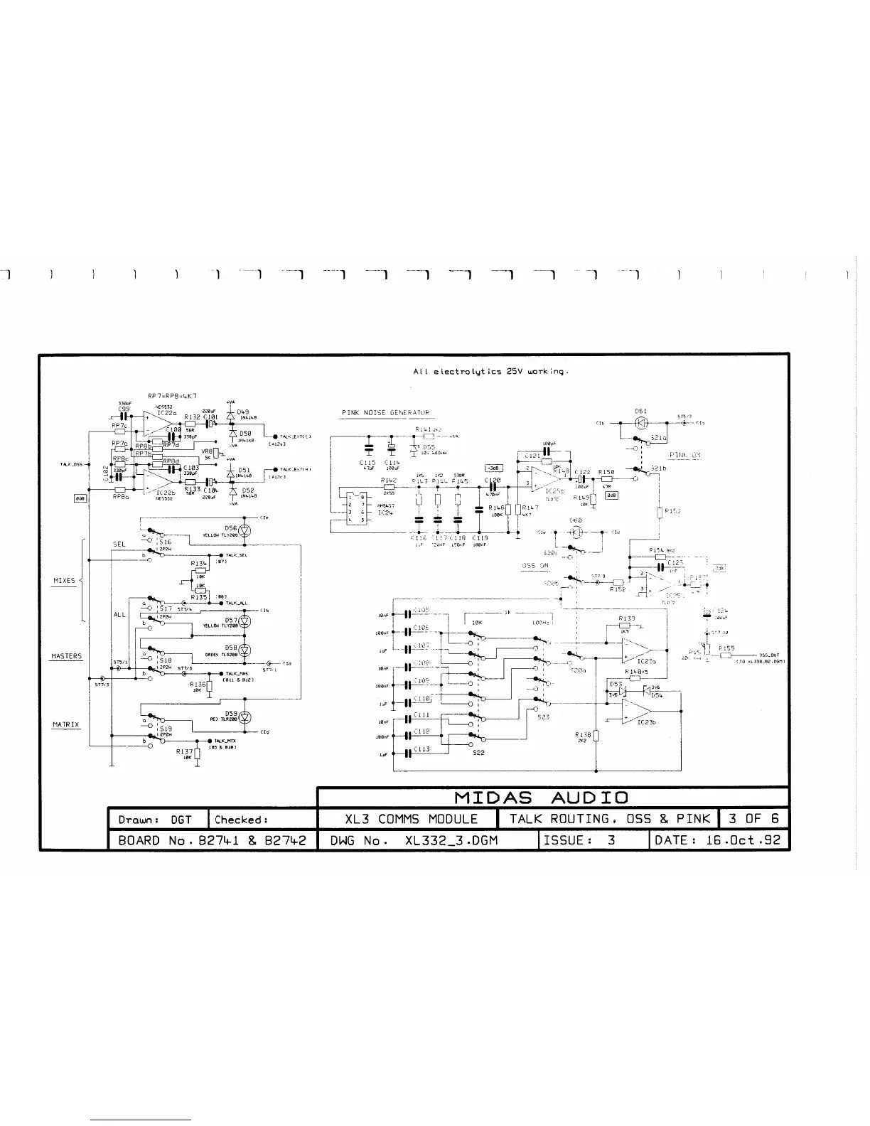 Midas XL3 - Communications Module Routing and Noise Diagrams; XL3 Comms Module Talk, Routing, OSS & Pink Diagram