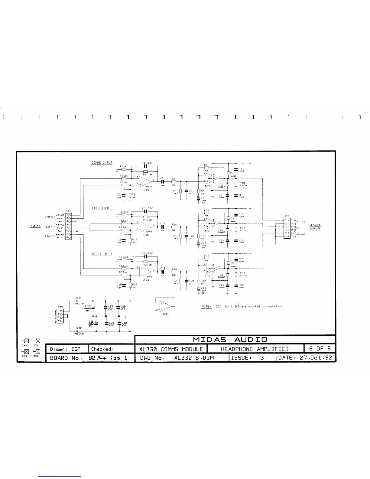 Midas XL3 - Communications Module Headphone Amplifier Diagrams; XL330 Comms Module Headphone Amplifier Diagram