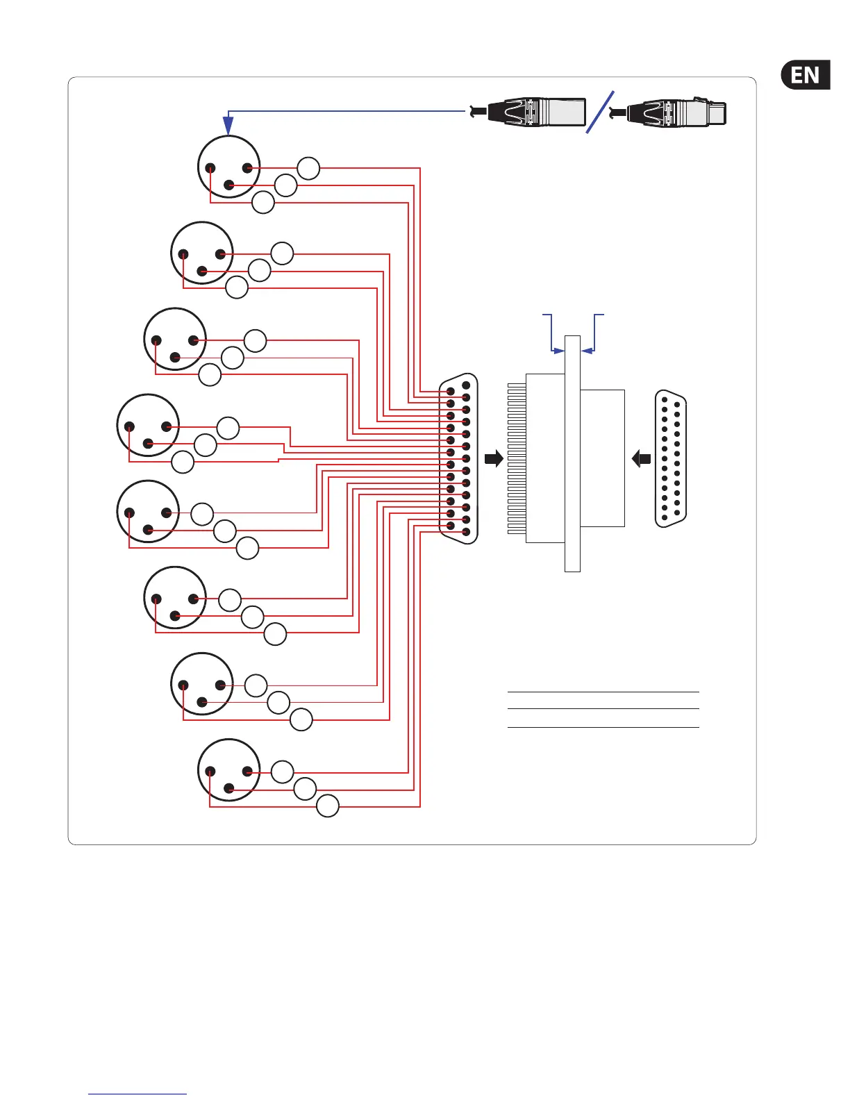connector) adapter cable pinouts for a 25-way D-type connector to eight XLRs using the standard