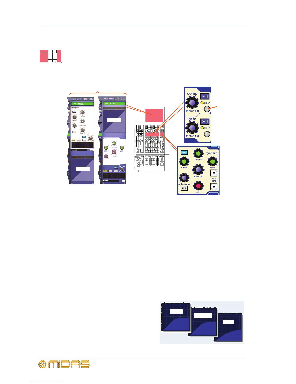 3 In the D-zone, operate the attack, ratio/range (ratio), release, threshold and