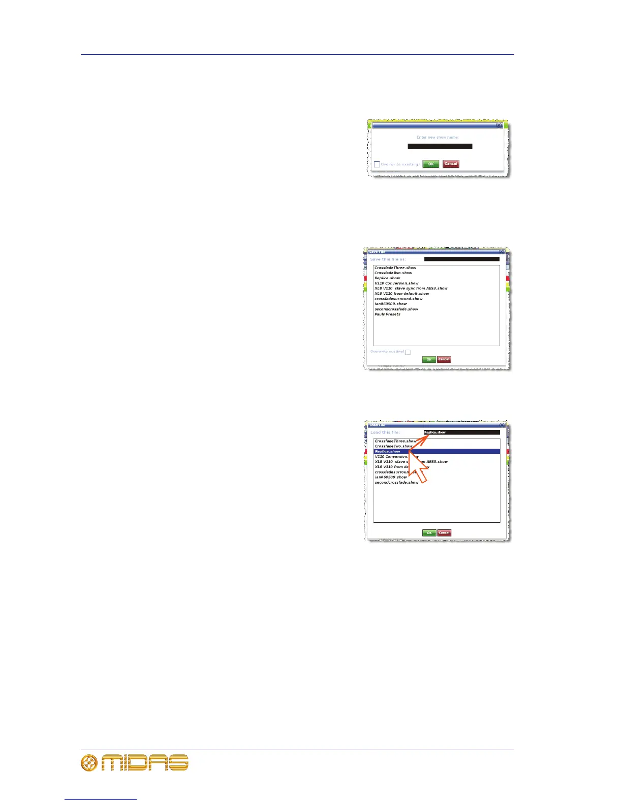 • To overwrite an existing show, click SAVE AS.