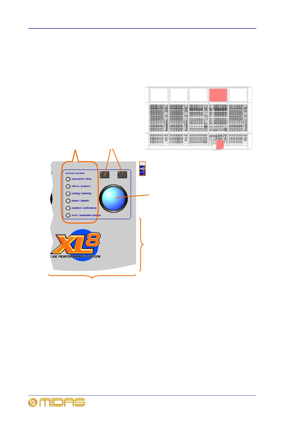 Chapter 7 “GUI Menu Options”. Six screen access buttons in the primary navigation