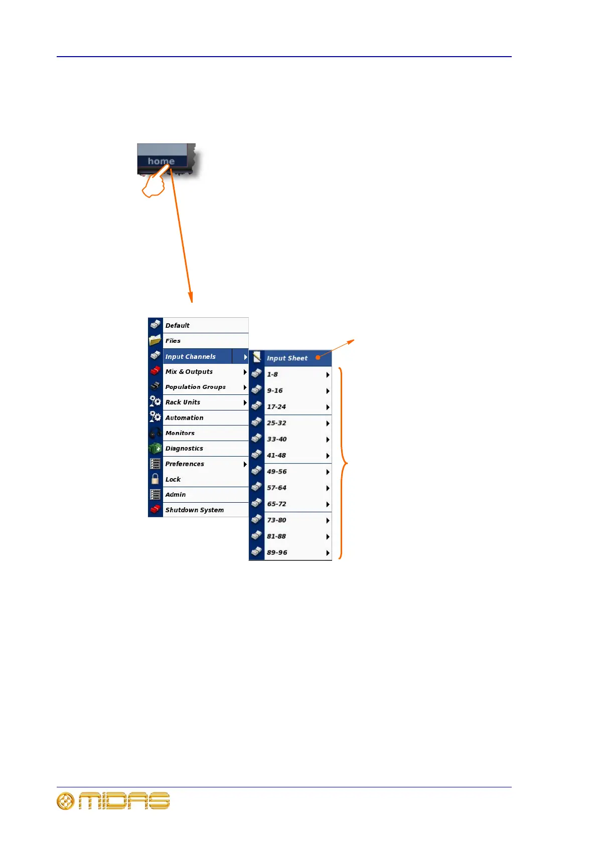 Takes you to any of the 96 inputs (banks