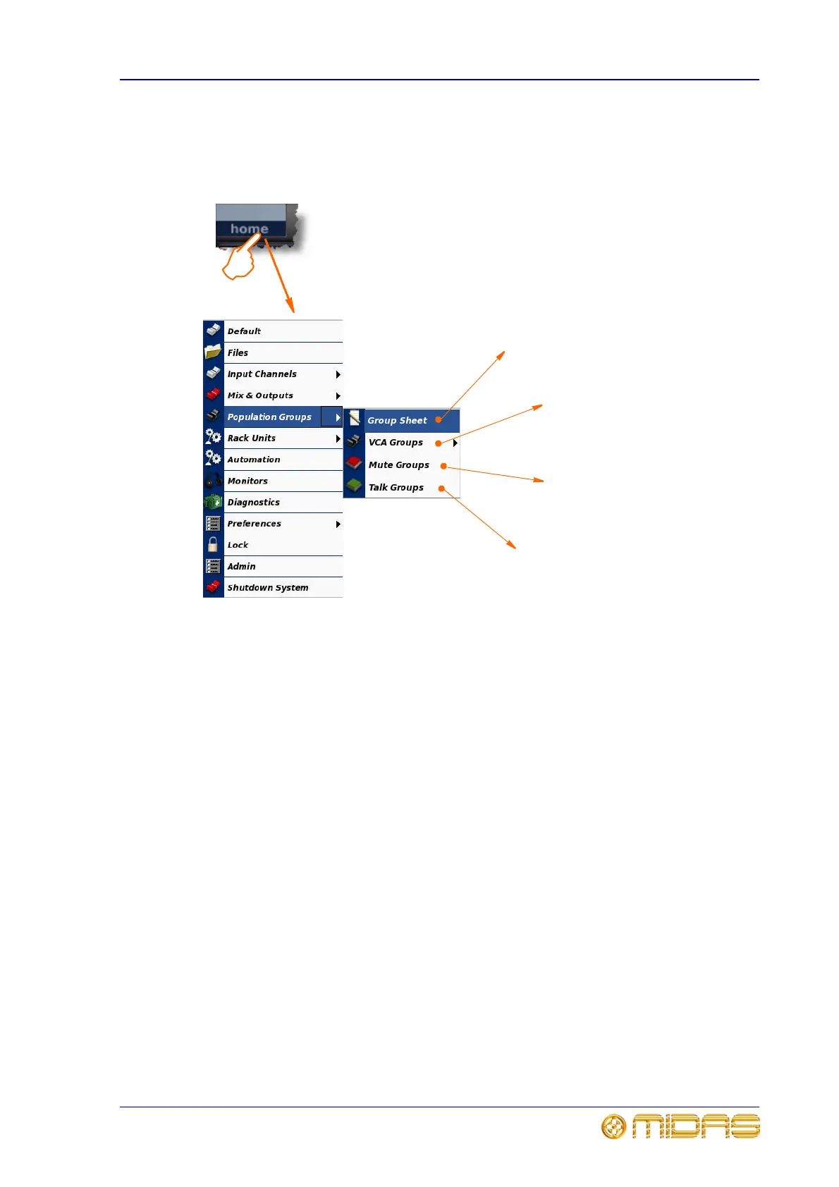 The VCA (including POP groups), Mute and Talk Groups screens are, effectively, split