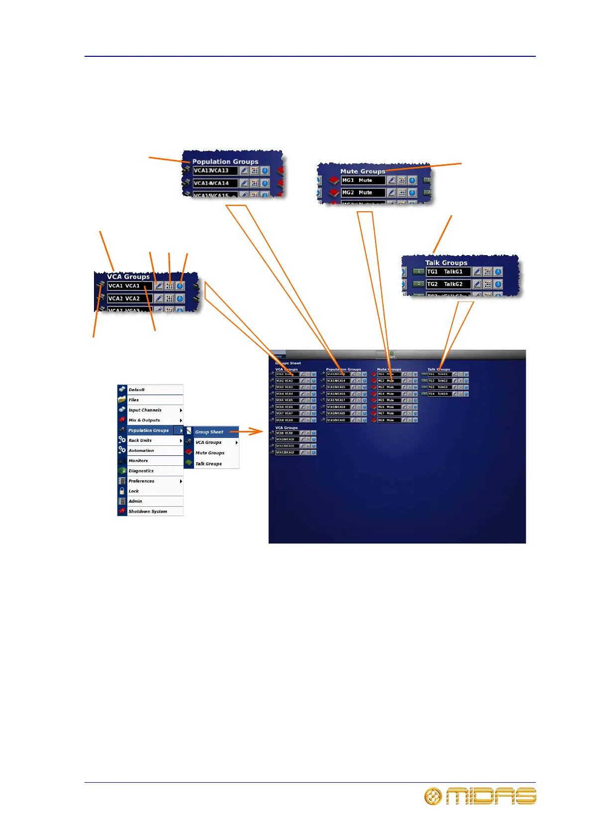 group (VCA, POP, mute and talk) as they appear on the GUI screen and LCD select