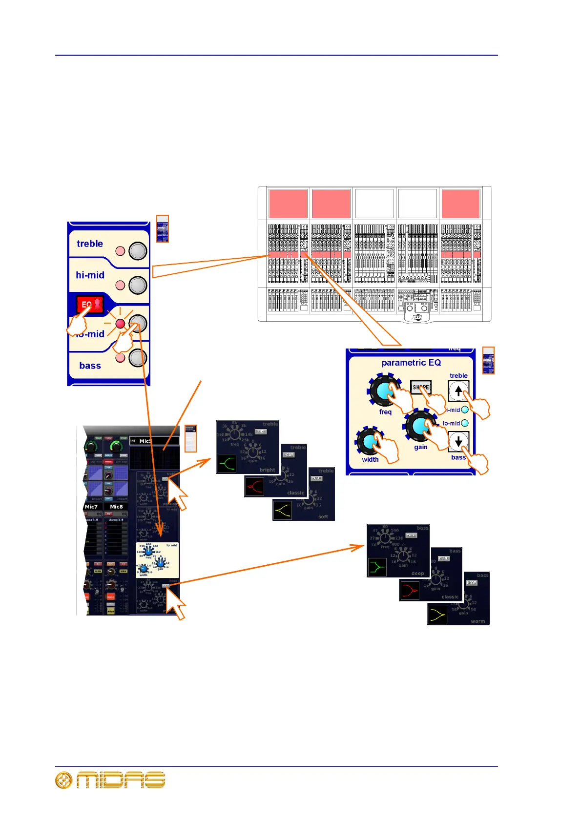2 Select the required filter, that is, treble, hi-mid, lo-mid (as in this example) or bass, by pressing its quick access