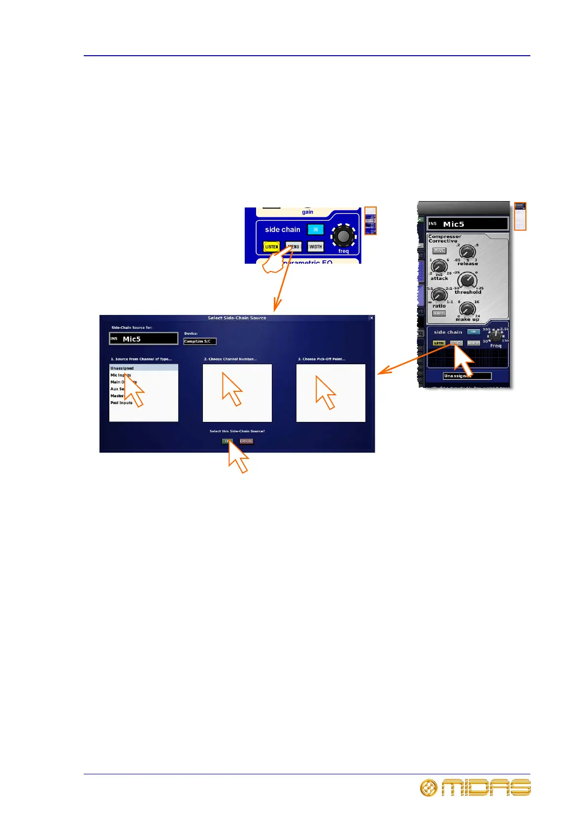 signal. The side chain can be used on mic input, main output, aux, master and pool