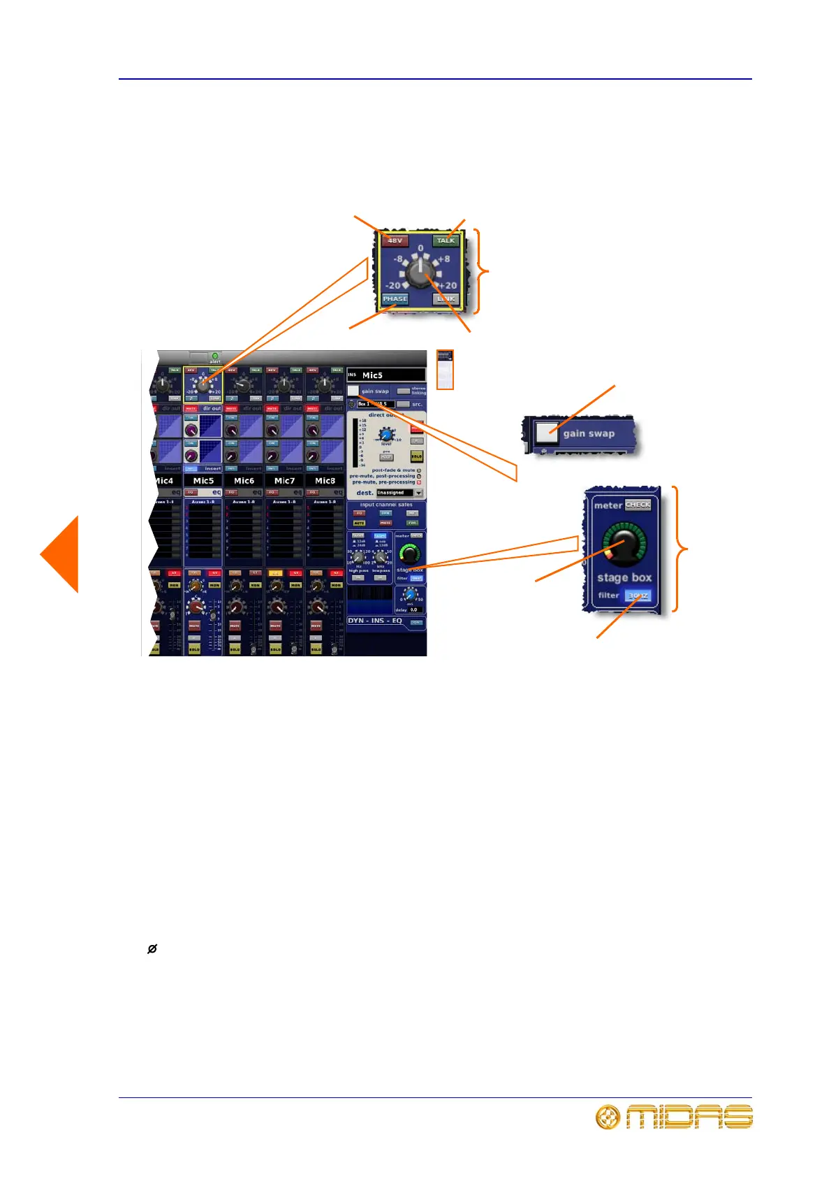 channel strip gain control. When ‘swapped’, analogue step gain controls are in the input fast strips