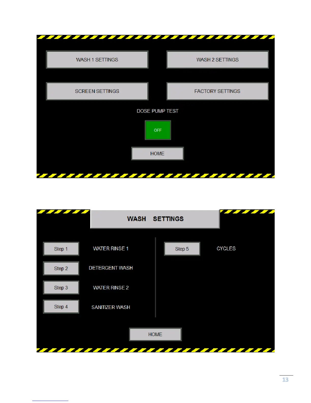 Figure 7 - Wash Settings Main Screen
