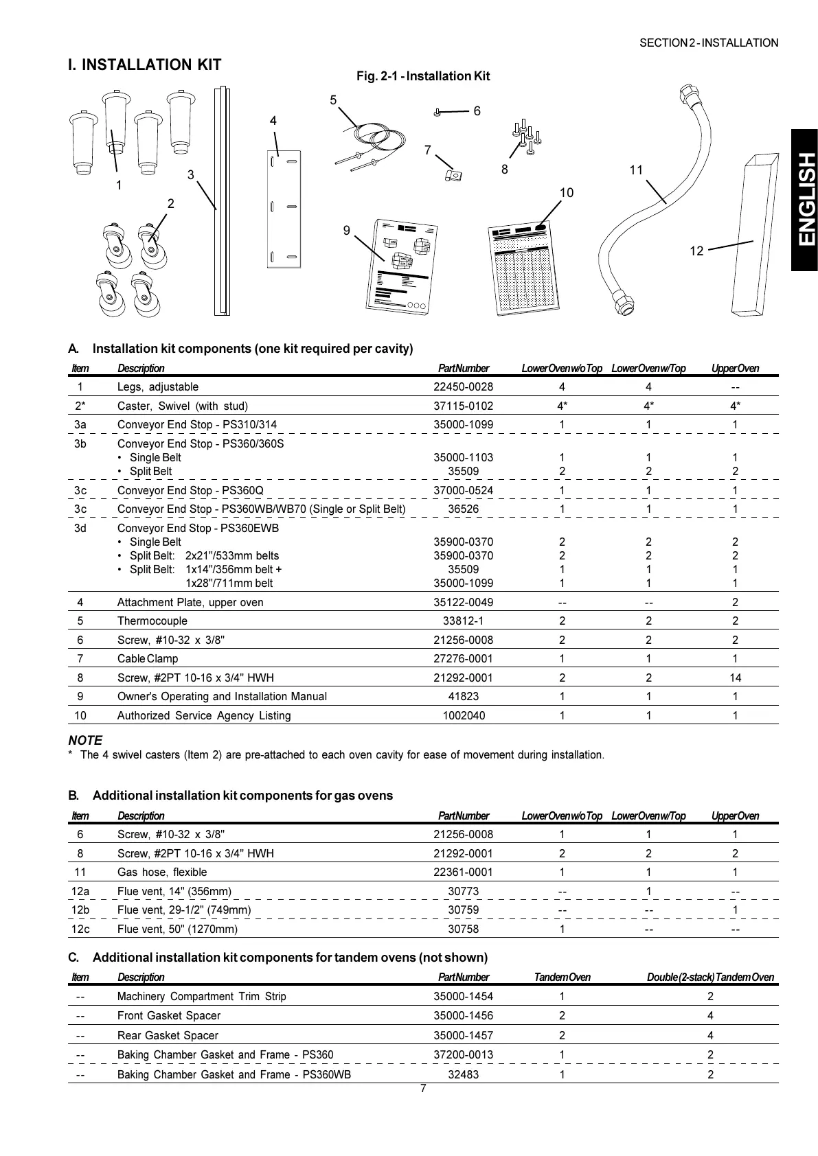 Item Description Part Number Tandem Oven Double (2-stack) Tandem Oven