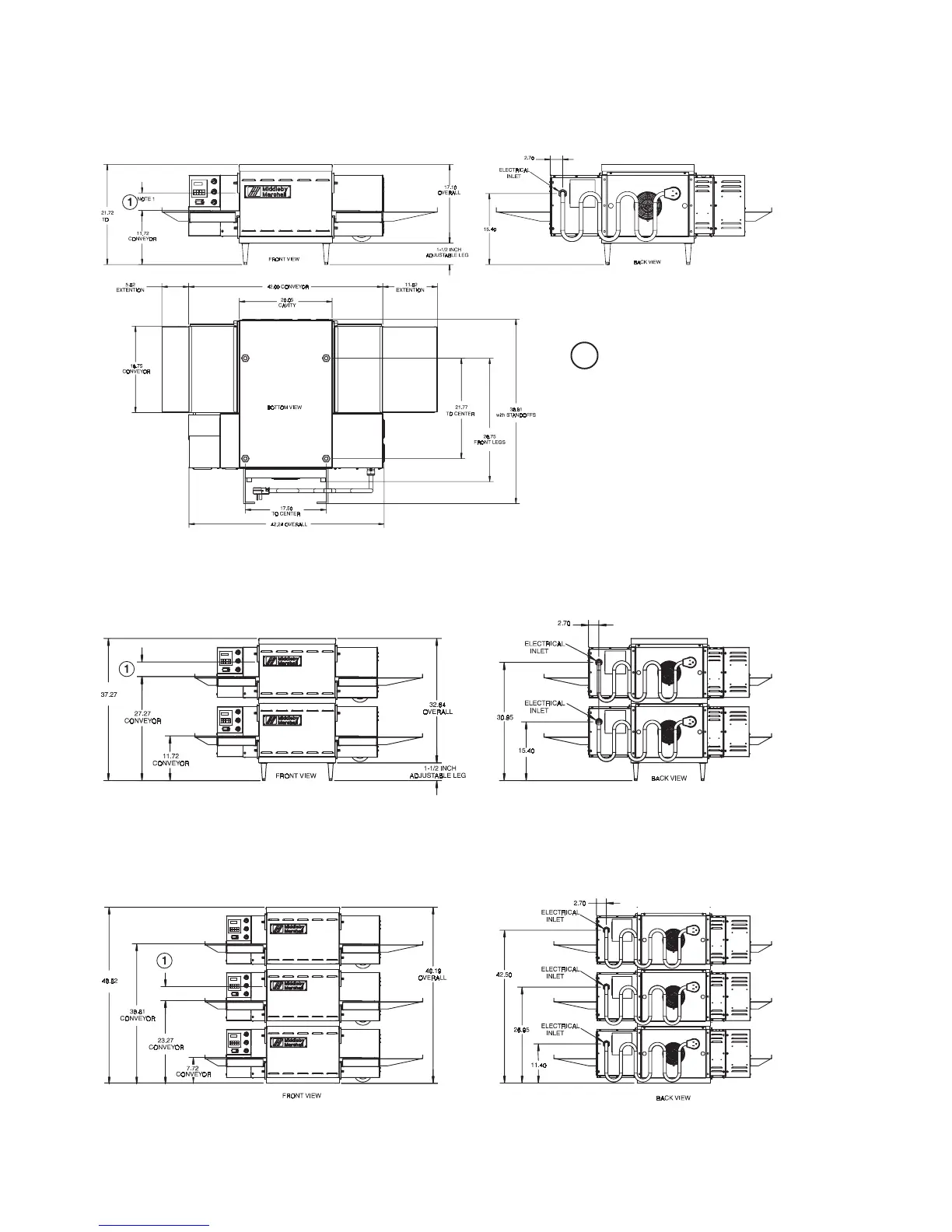 Middleby Marshall PS520E - Oven Dimensional Diagrams; Single Oven Dimensions and Views; Double;Triple Oven Dimensions
