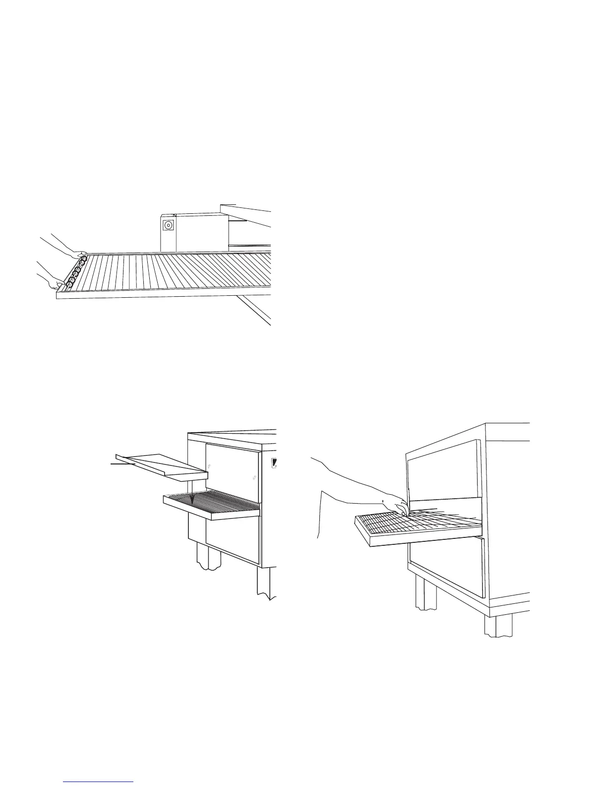 1. Lift conveyor and position it in the oven as shown.
