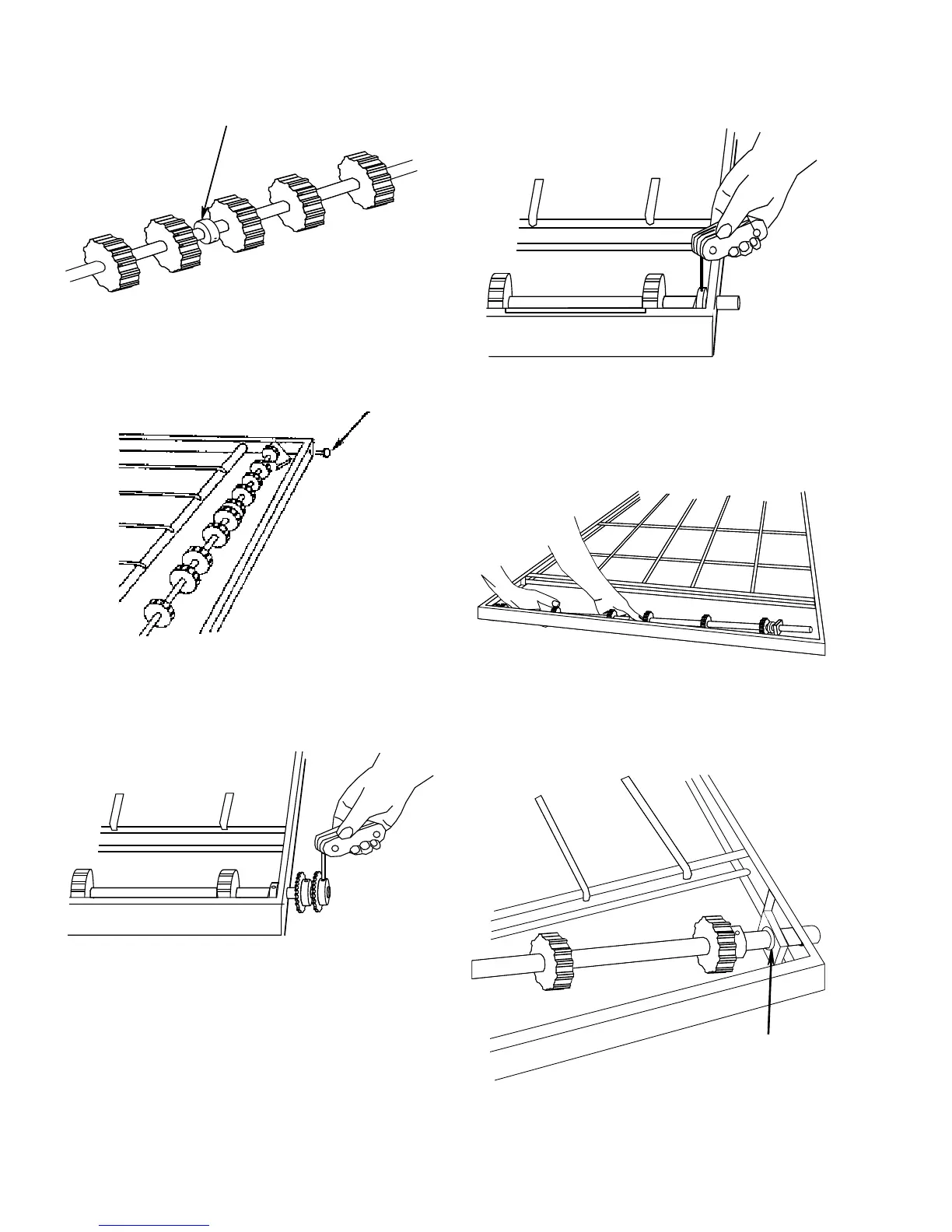 11. Reassemble conveyor drive shafts into frame, mak-