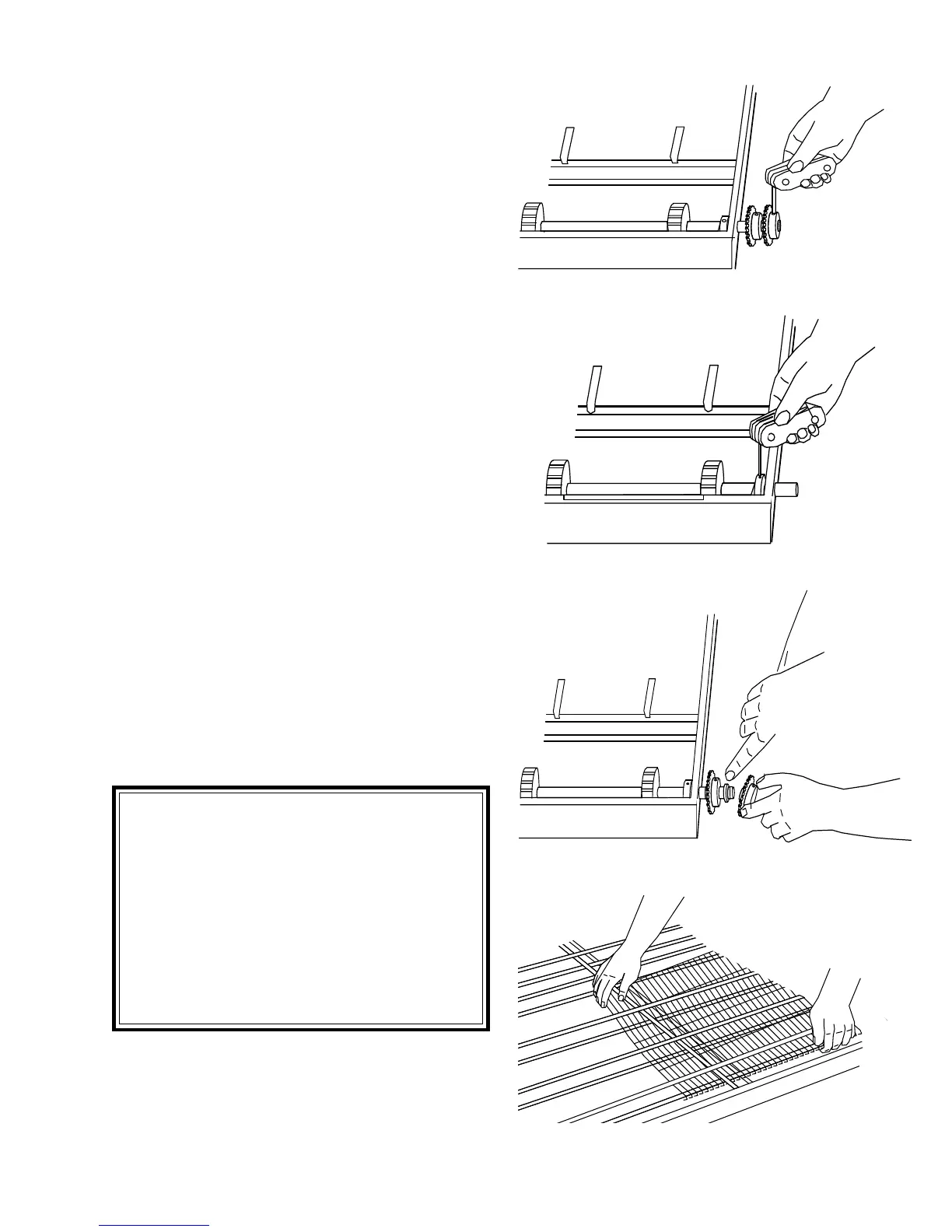 13. Slide rear conveyor drive sprocket onto shaft. Tighten