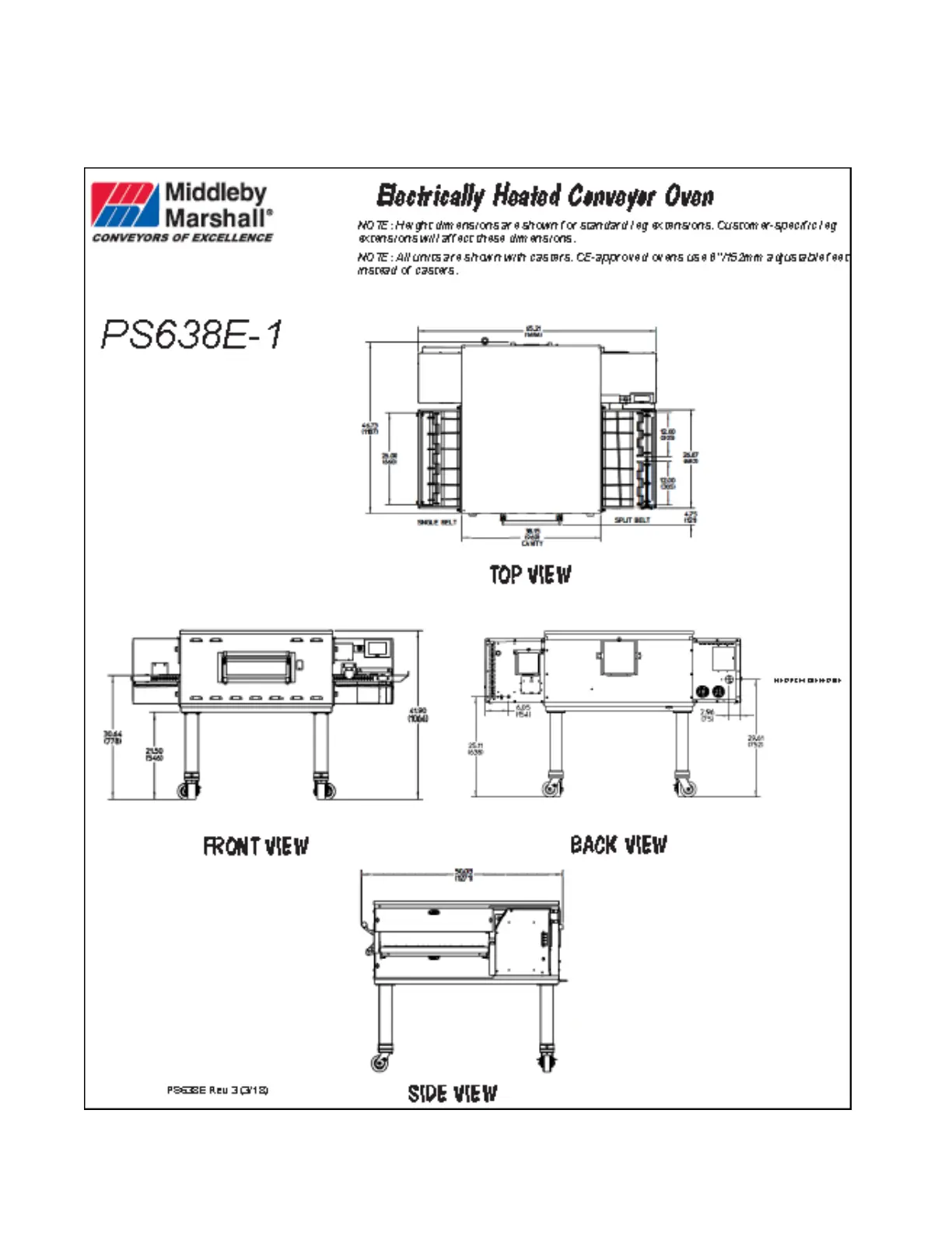 Middleby Marshall PS638E - Oven Layouts; Single Oven Stacked