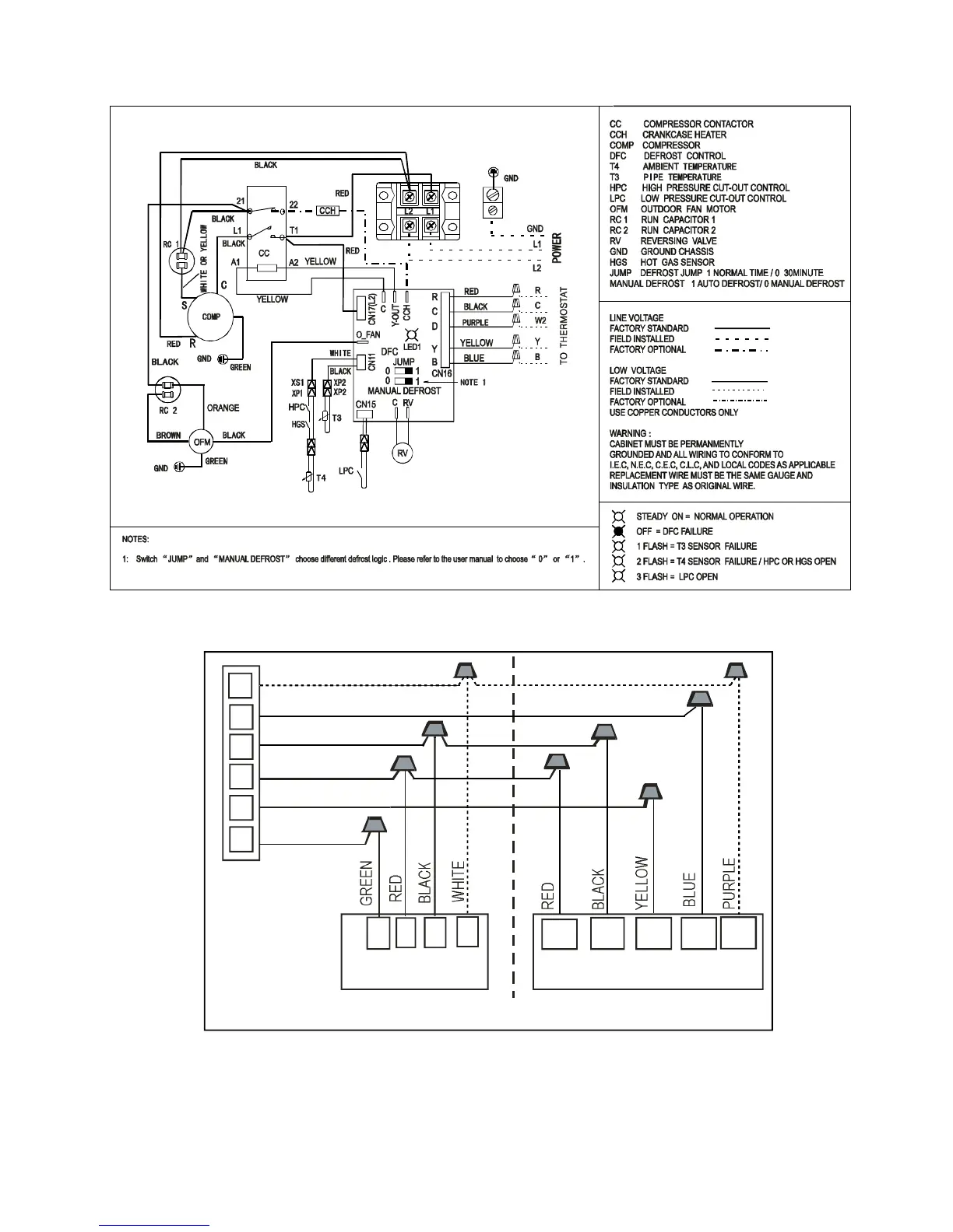 thermostat. Broken lines means H/P system with electric heating. Please refer to thermostat