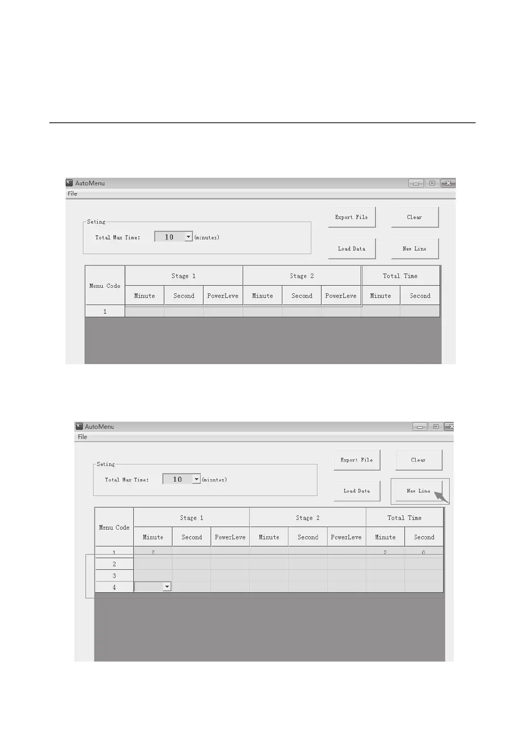 Set the first menu, wo stages of cooking can be set. And you can set the