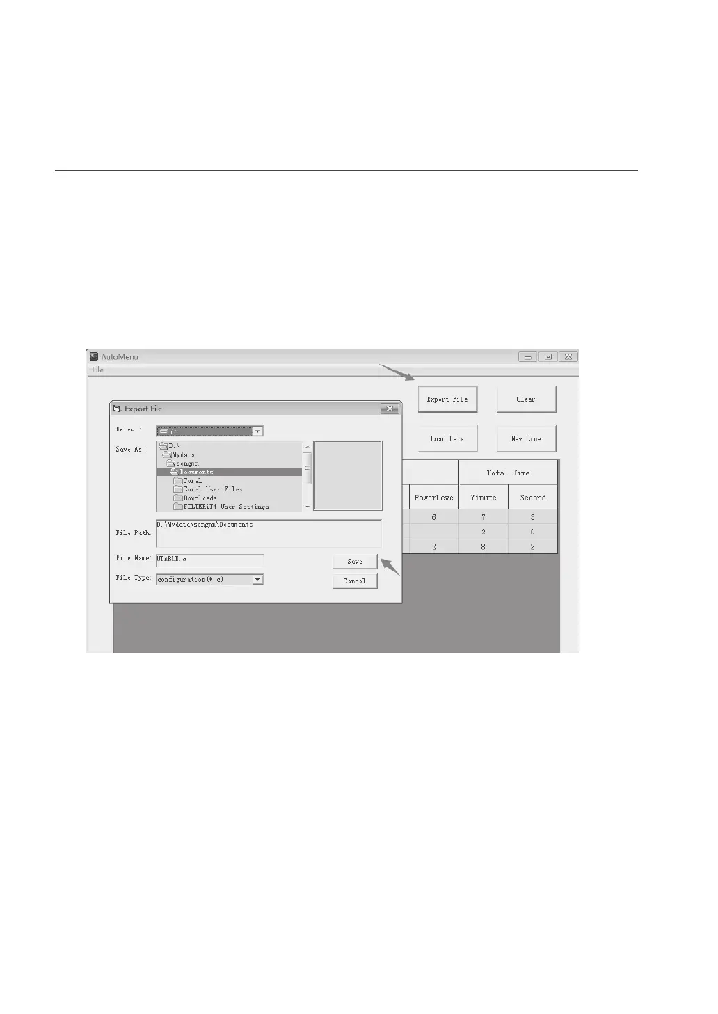 Click “ Export File ”to export the file to U disk he file will be named “ UTABLE.C”.