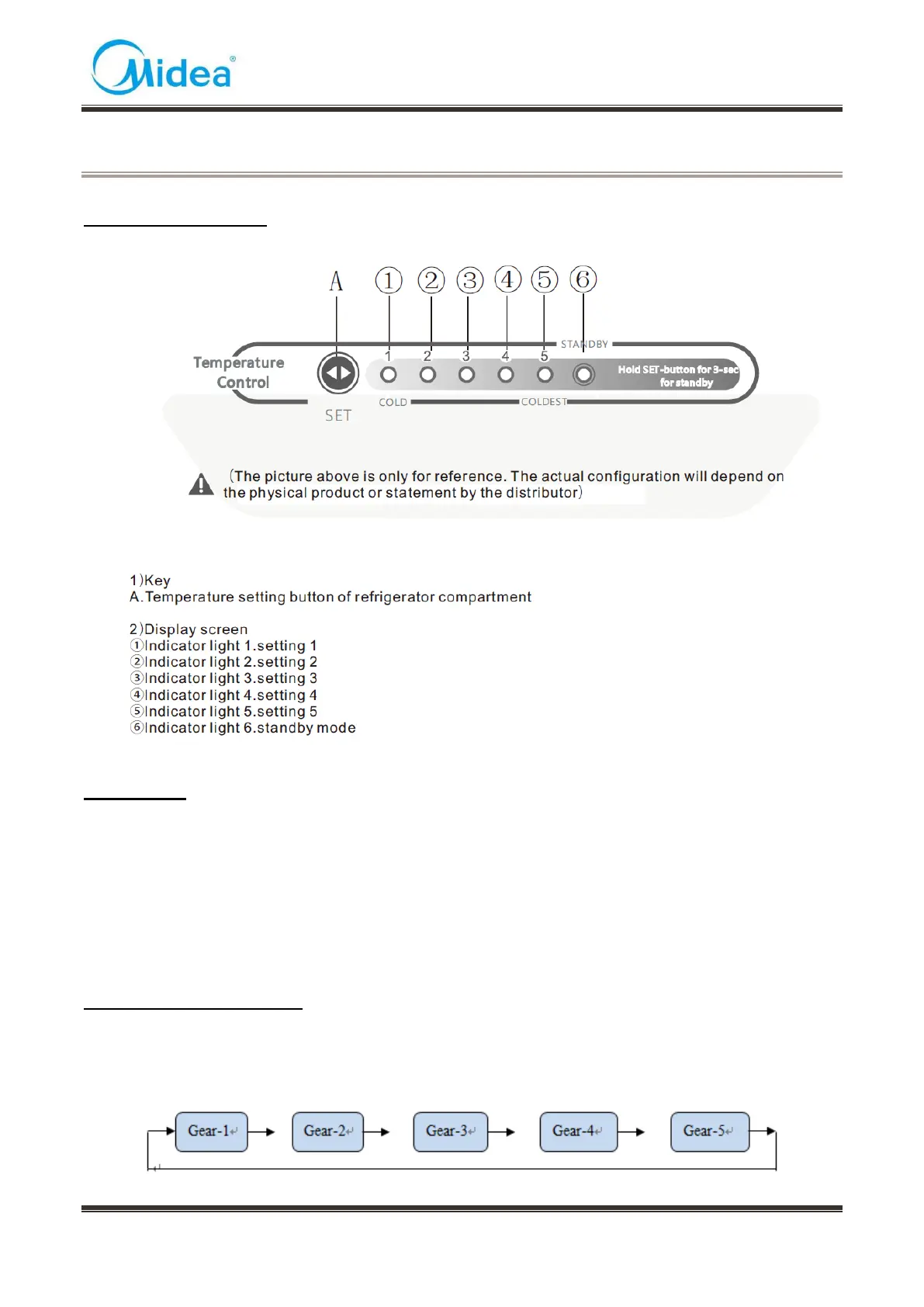The gear can be set to: (The set temperature will be reduced by 1°C and it can be set circularly)