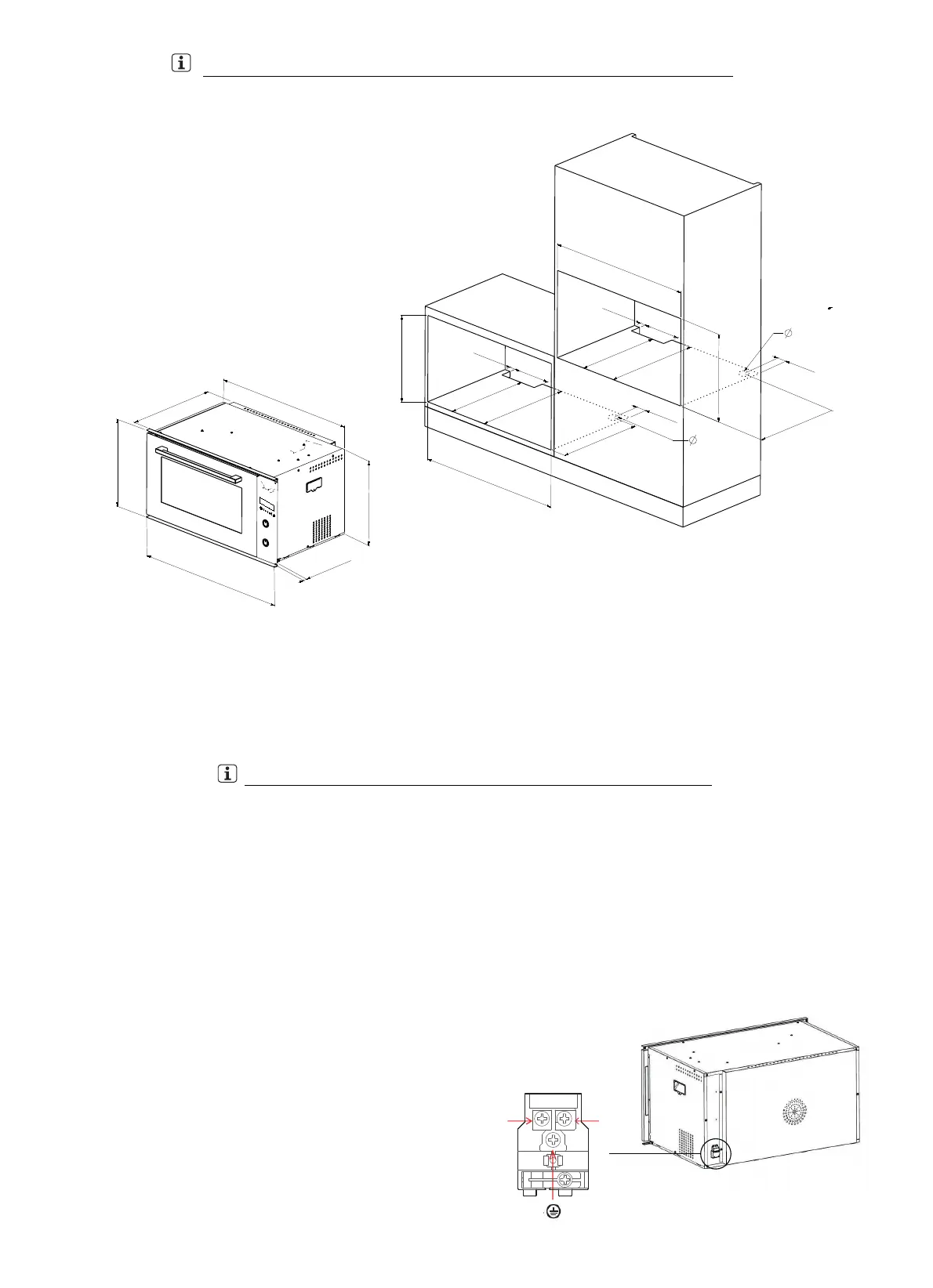 • The oven is provided with a three-pole power cable with free terminals.