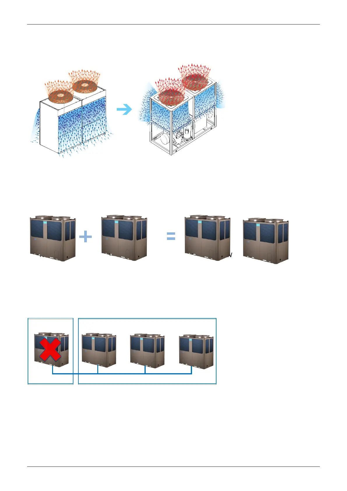 combination of the system consists of 1 main unit and 15 slave units. Cooling (heating) capacity range is